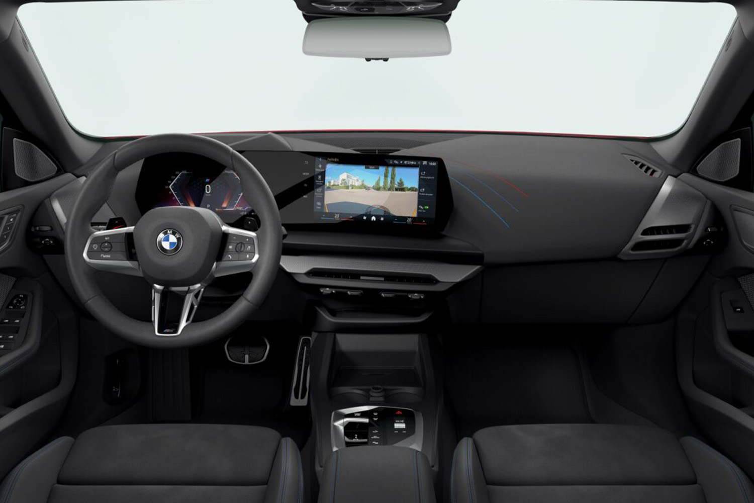 Sportovní charakter BMW 220d Gran Coupe je patrný na první pohled. Výrazný žraločí nos, široká a nízko umístěná maska chladiče a minimalistické přední světlomety podtrhují jeho dynamiku. Splývavá linie střechy a dlouhá boční okna vytvářejí vyváženou a sportovní siluetu, zatímco černé prvky na zádi dodávají vozu agresivní vzhled. Interiér se vyznačuje čistým a strukturovaným designem, který maximálně zvýrazňuje velký BMW Prohnutý displej.