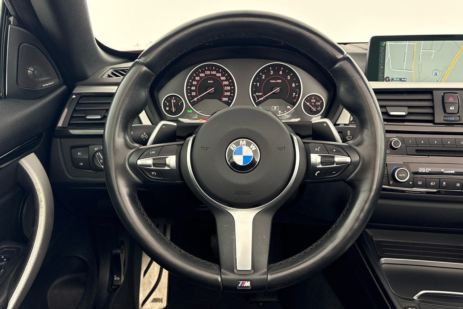 Reproduktory prvotřídní kvality se vyznačují šestihrannou perforovanou deskou v tmavém provedení Titan. Centrální výškový a středový reproduktor jsou umístěny uprostřed přístrojové desky. Dva výškové reproduktory v úchytech zpětných zrcátek a dva středové reproduktory v panelech předních dveří jsou označeny logem Harman Kardon, stejně jako středové reproduktory v obložení zadních dveří. Dva centrální subwoofery pod předními sedadly zaujmou svým objemem a dva výškové reproduktory a středové reproduktory v čalounění stropu zajišťují vynikající poslech i cestujícím na zadních sedadlech. Zvuk se upravuje pomocí časem prověřeného ergonomického ovladače iDrive a kontrolního displeje.