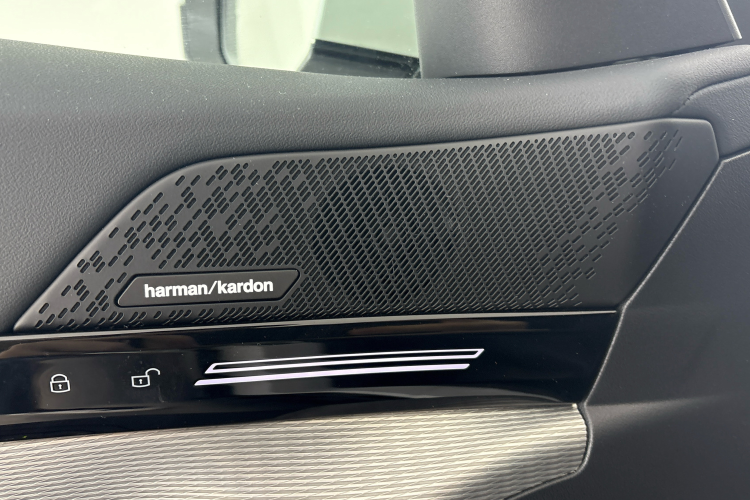 Oba centrální subwoofery jsou umístěny pod předními sedadly. Mřížky všech reproduktorů jsou vyrobeny z kovu. Nápis Harman/Kardon v hliníkovém provedení na výškových reproduktorech v základnách zrcátek přispívá k elegantnímu vzhledu interiéru a je příslibem výjimečné kvality zvukového podání.