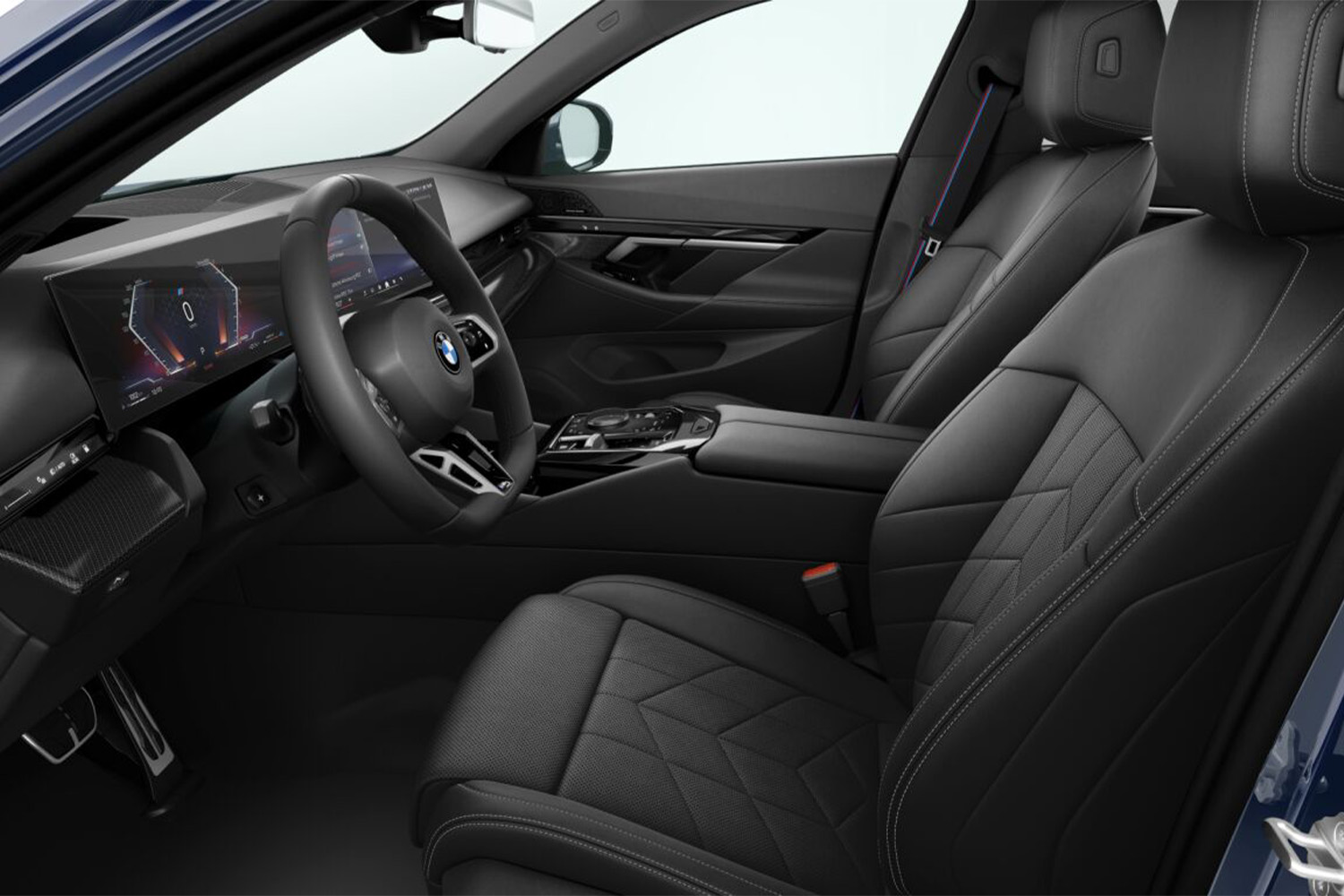 M bezpečnostní pásy jsou vybavené předpínači a omezovači tahu. Mají vyšitou klasickou M trikoloru, která dává interiéru specifický charakter.