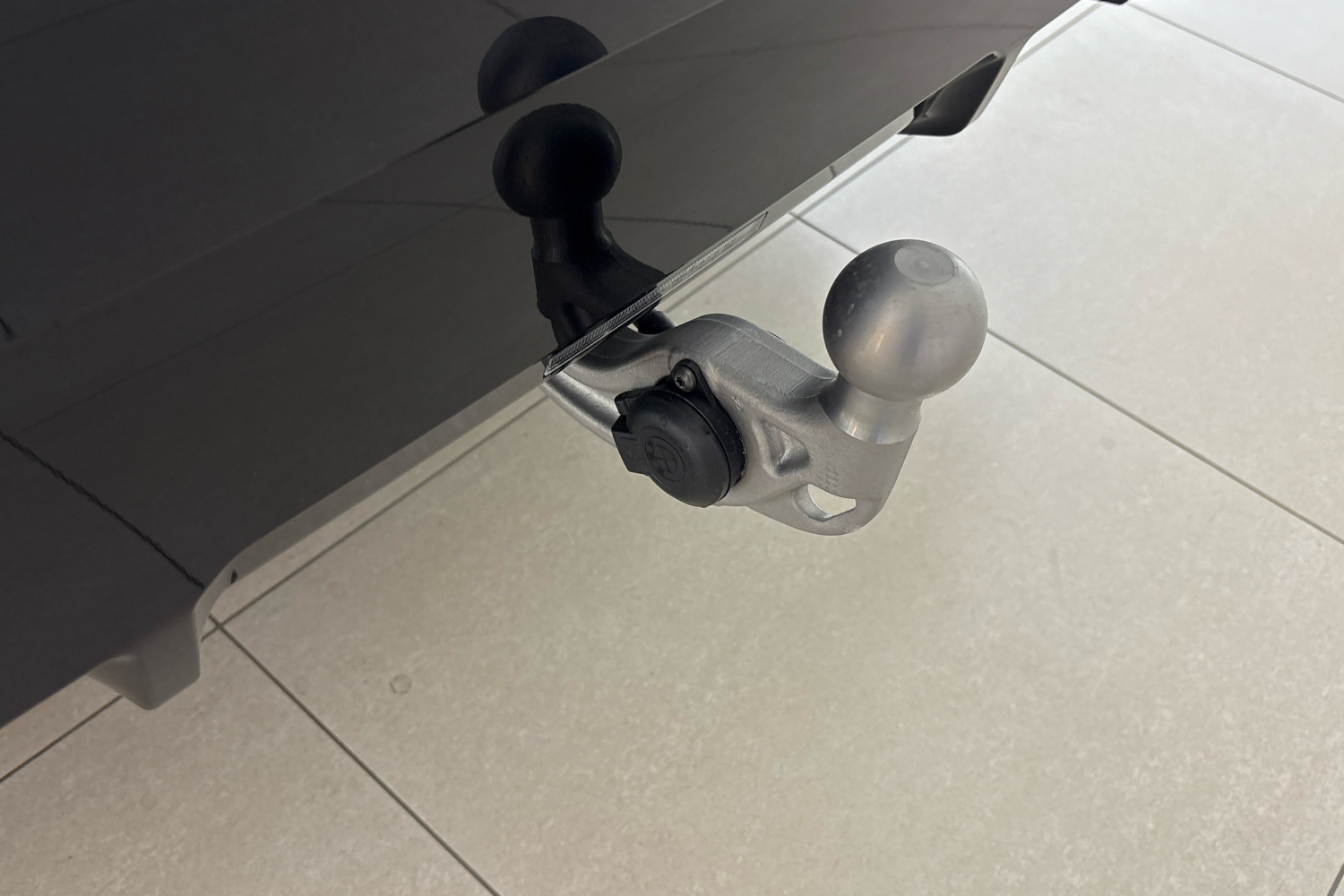 Tažné zařízení s elektricky výklopnou hlavicí lze velmi snadno sklopit pod zadní nárazník, takže při jízdách bez přívěsu není vůbec vidět. Také tím odpadá riziko krádeže hlavice. Ovladač tažného zařízení je umístěn v zavazadlovém prostoru vozidla.