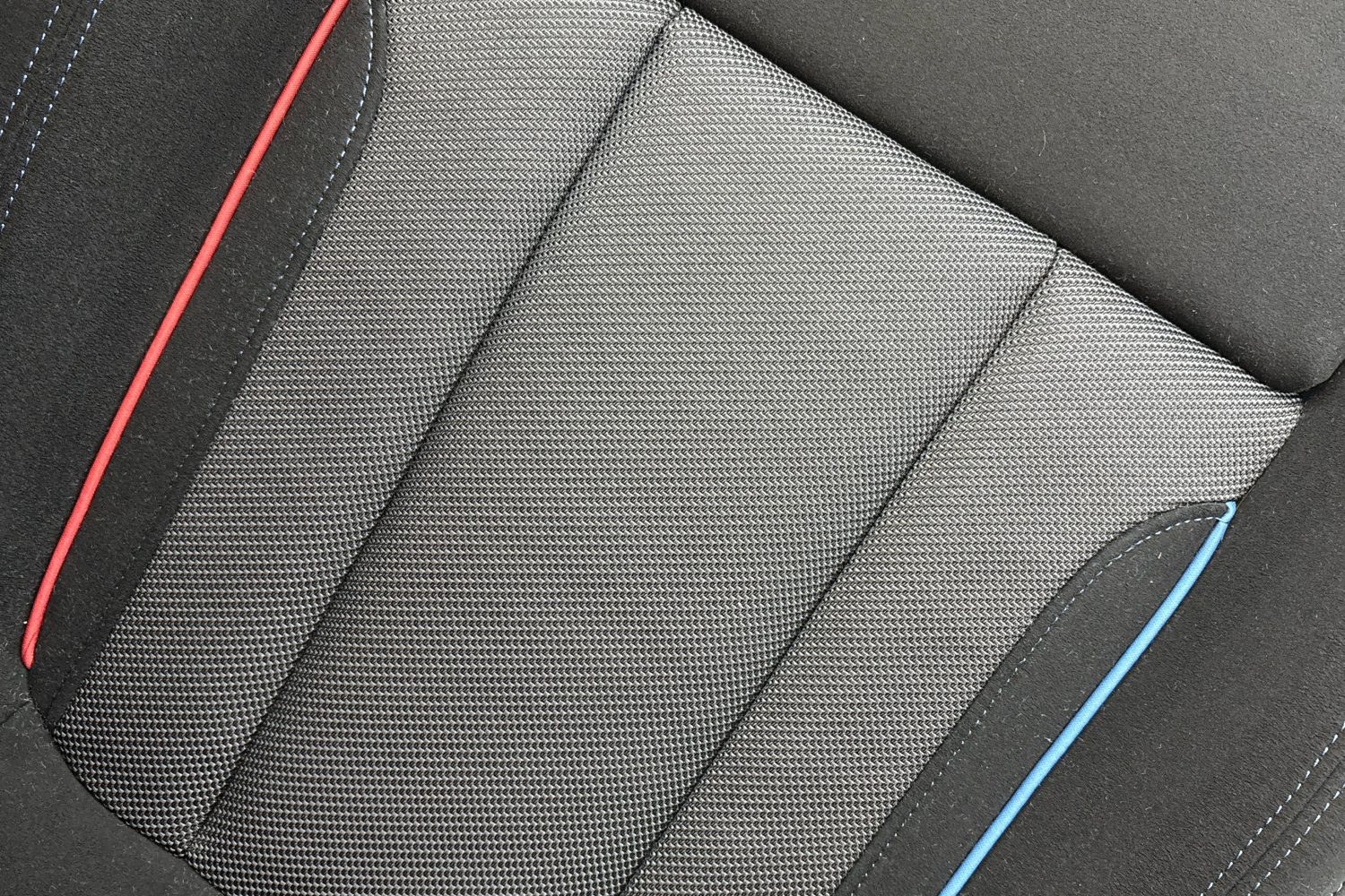 M bezpečnostní pásy jsou vybavené předpínači a omezovači tahu. Mají vyšitou klasickou M trikoloru, která dává interiéru specifický charakter.