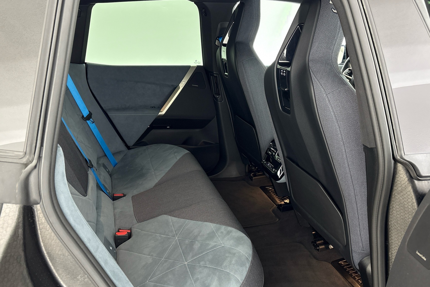 Bezpečnostní pásy všech čtyř sedadel v modré barvě BMW i Blue.
