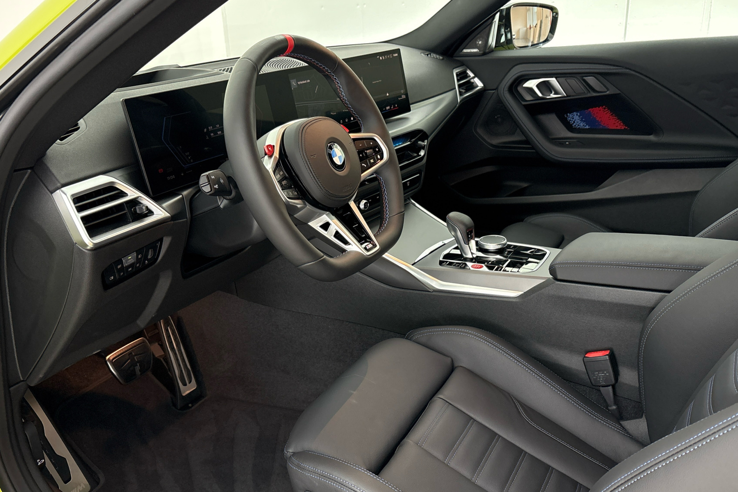 BMW M2 Coupe Coupé stanovuje nové, v dané třídě vrcholné standardy v oblasti zrychlení, ovladatelnosti, preciznosti a agility, což z něj činí ideální volbu pro fanoušky vysokovýkonných automobilů. Benzínový motor s výkonem 353 / 480 kW/HP a s objemem 2 993 ccm3 vzbudí emoce u mladší cílové skupiny. Barva v kombinaci s interiérem Kůže Vernasca Black s dekorativním prošíváním/Black propůjčuje vozu klasickou M náturu a sportovnost.