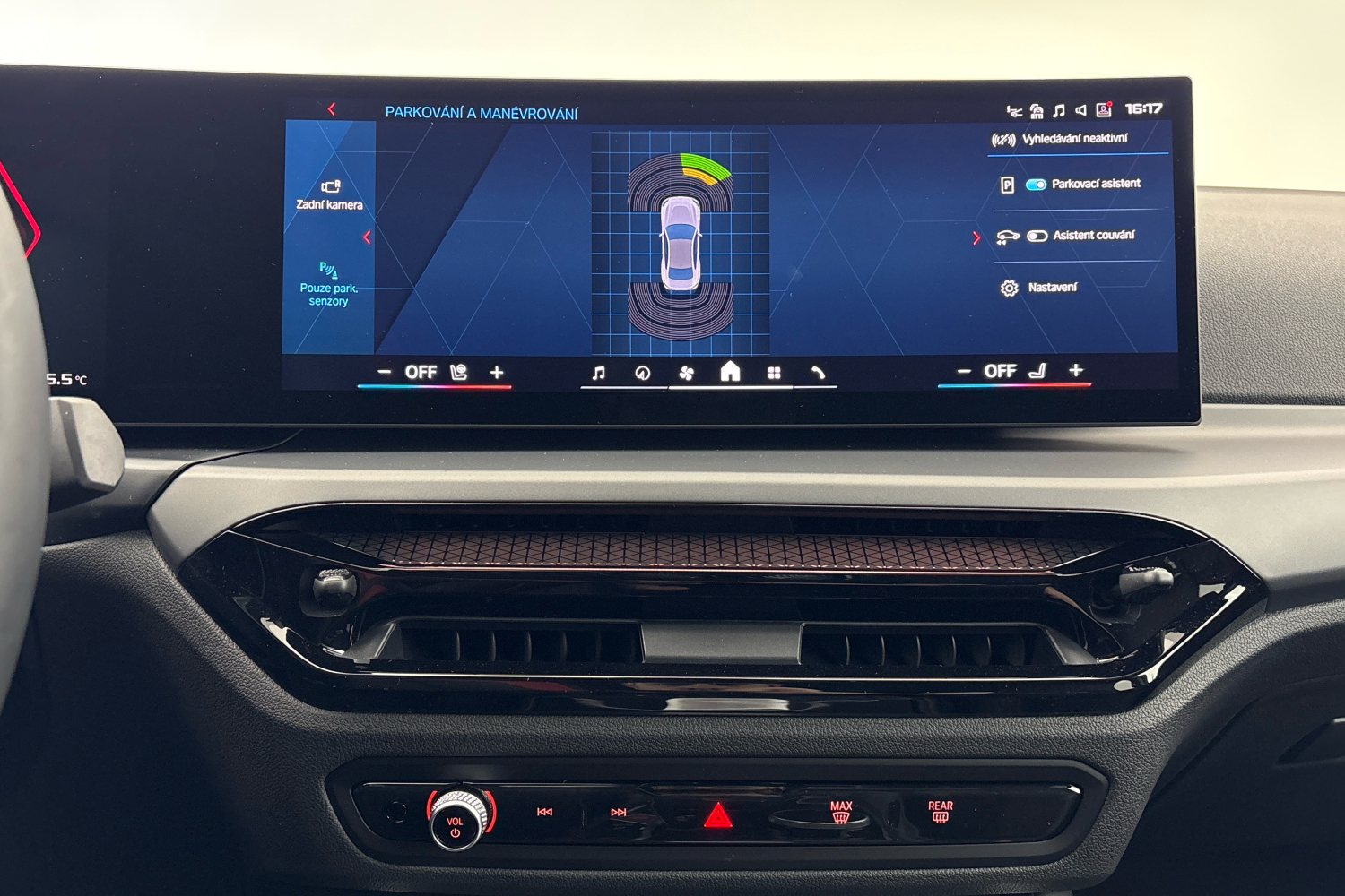 Při parkování lze využít boční senzory, které sledují oblasti po stranách vozu a zobrazují překážky na kontrolním displeji. Funkce nouzového brzdění Active Park Distance Control nabízí řidiči podporu v případech, kdy je nutné do parkovacího místa zacouvat, a přispívá tak k prevenci kolizí a zmenšení následků nárazů do překážek.