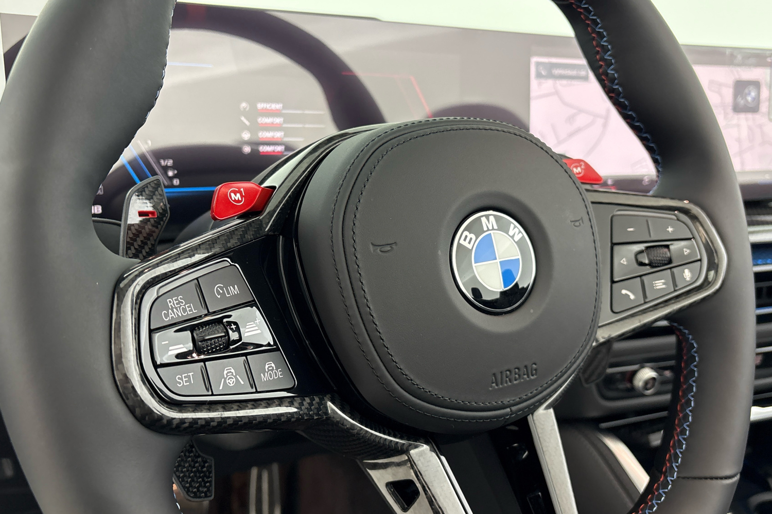 M bezpečnostní pásy jsou vybavené předpínači a omezovači tahu. Mají vyšitou klasickou M trikoloru, která dává interiéru specifický charakter.