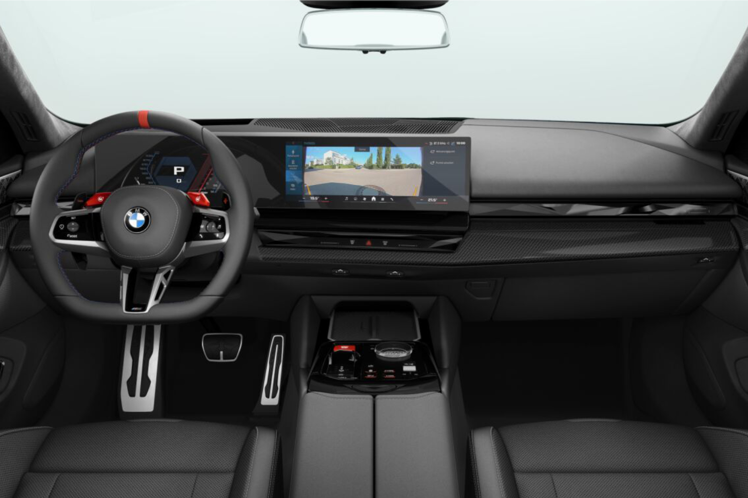 Exkluzivní multifunkční M sedadla odrážejí dynamiku exteriéru vozidla v jeho interiéru. Řidič a spolujezdec se mohou pohodlně opřít do celokožených sedadel s osvětleným logem M5 na opěrce hlavy.