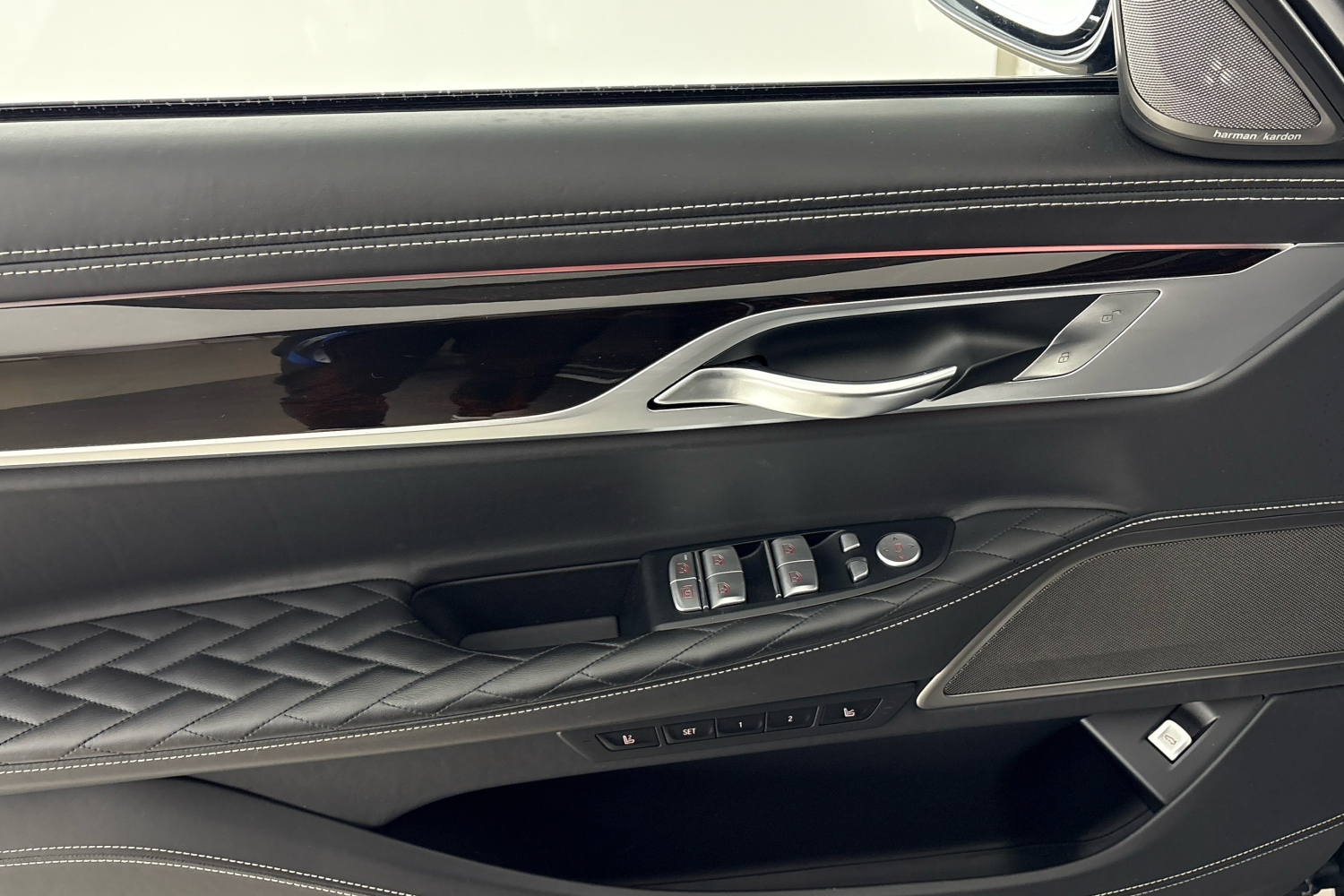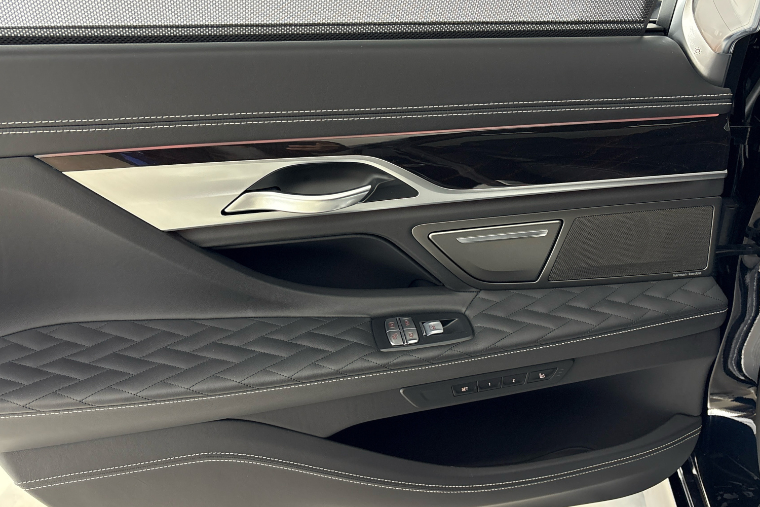 Reproduktory prvotřídní kvality se vyznačují šestihrannou perforovanou deskou v tmavém provedení Titan. Centrální výškový a středový reproduktor jsou umístěny uprostřed přístrojové desky. Dva výškové reproduktory v úchytech zpětných zrcátek a dva středové reproduktory v panelech předních dveří jsou označeny logem Harman Kardon, stejně jako středové reproduktory v obložení zadních dveří. Dva centrální subwoofery pod předními sedadly zaujmou svým objemem a dva výškové reproduktory a středové reproduktory v čalounění stropu zajišťují vynikající poslech i cestujícím na zadních sedadlech. Zvuk se upravuje pomocí časem prověřeného ergonomického ovladače iDrive a kontrolního displeje.