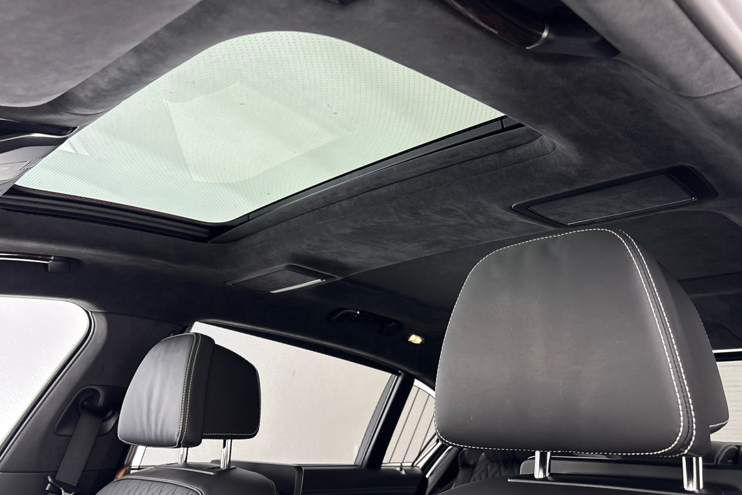 M čalounění stropu kvalitní Alcantarou v barvě antracitu spolu s barevně sladěnými slunečními clonami, zadním platem a sloupky karoserie obloženými Alcantarou dodává vnitřnímu prostoru dojem vzrušující propracovanosti.