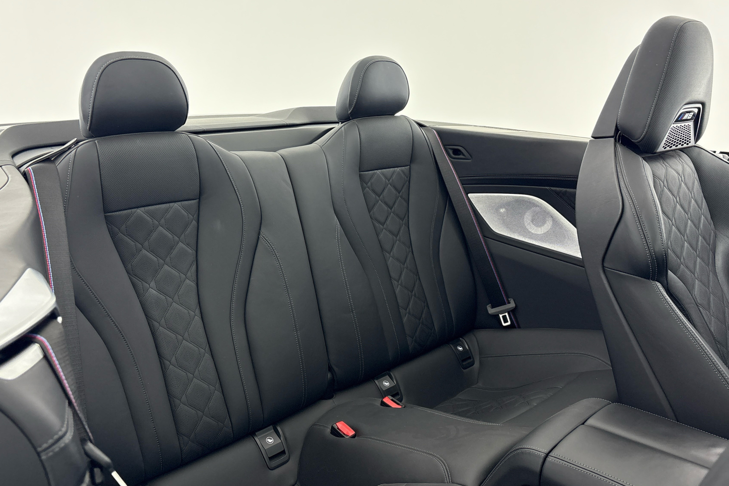 M bezpečnostní pásy jsou vybavené předpínači a omezovači tahu. Mají vyšitou klasickou M trikoloru, která dává interiéru specifický charakter.