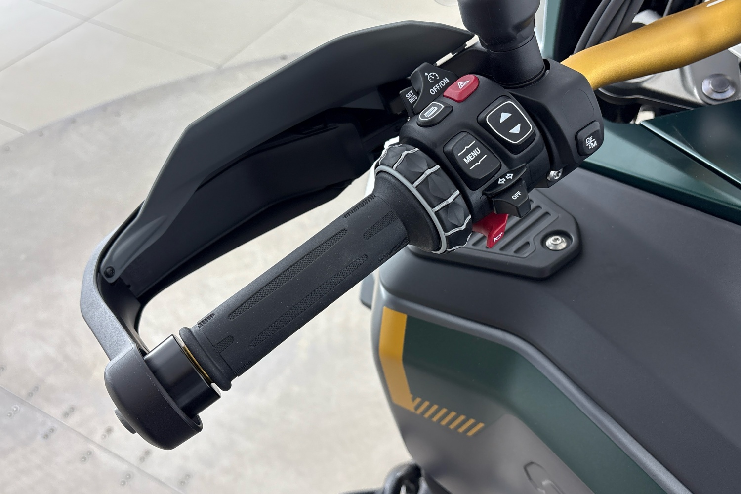 Příprava pro navigaci s držákem a uchycením pouzdra na svorce řídítek slouží k zabezpečení a integraci systému BMW Navigator do konceptu ovládání stroje. Navigační systém a možnosti připojení se dají pohodlně ovládat přes multifunkční ovladač na levé straně řídítek.