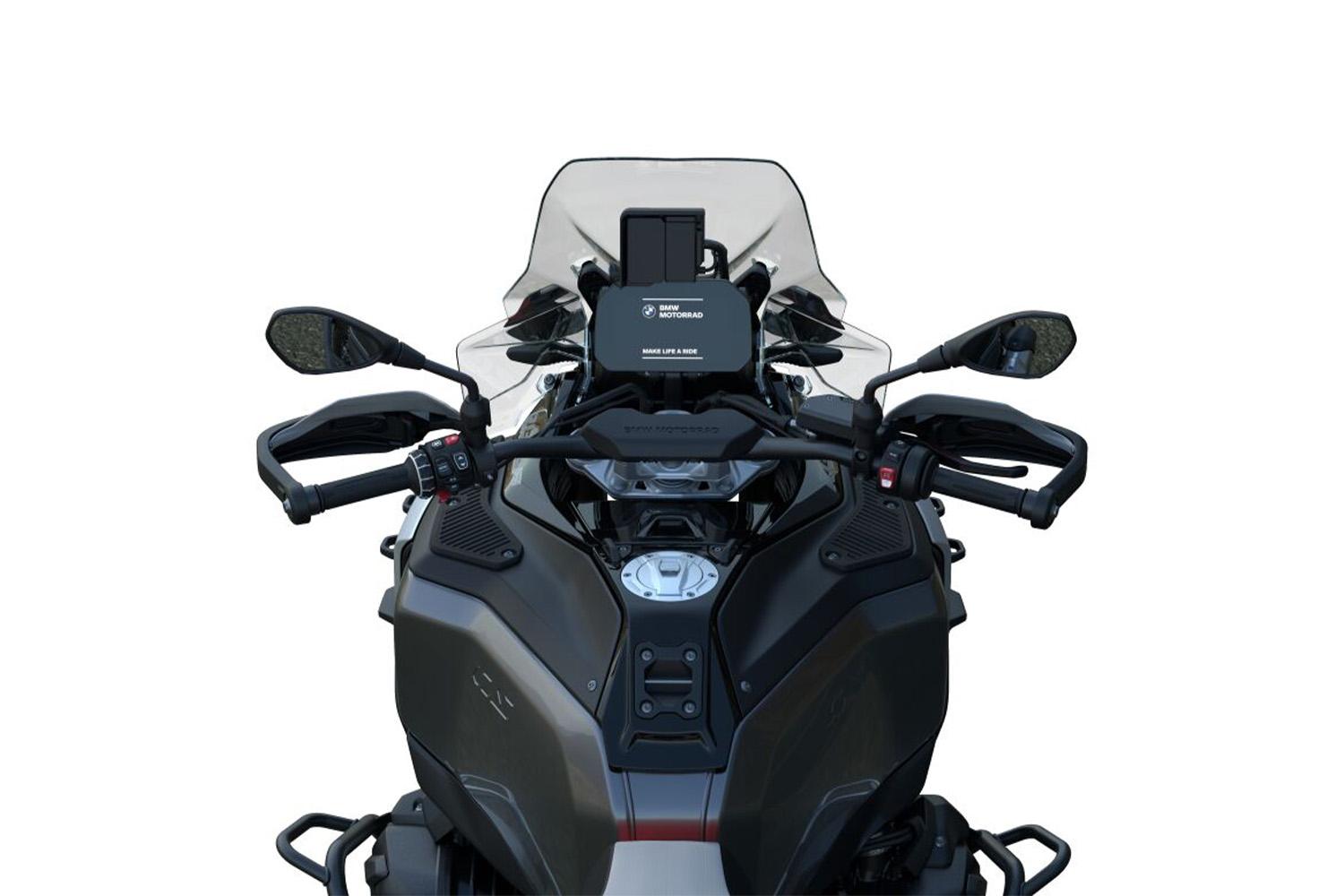 Příprava pro navigaci s držákem a uchycením pouzdra na svorce řídítek slouží k zabezpečení a integraci systému BMW Navigator do konceptu ovládání stroje. Navigační systém a možnosti připojení se dají pohodlně ovládat přes multifunkční ovladač na levé straně řídítek.