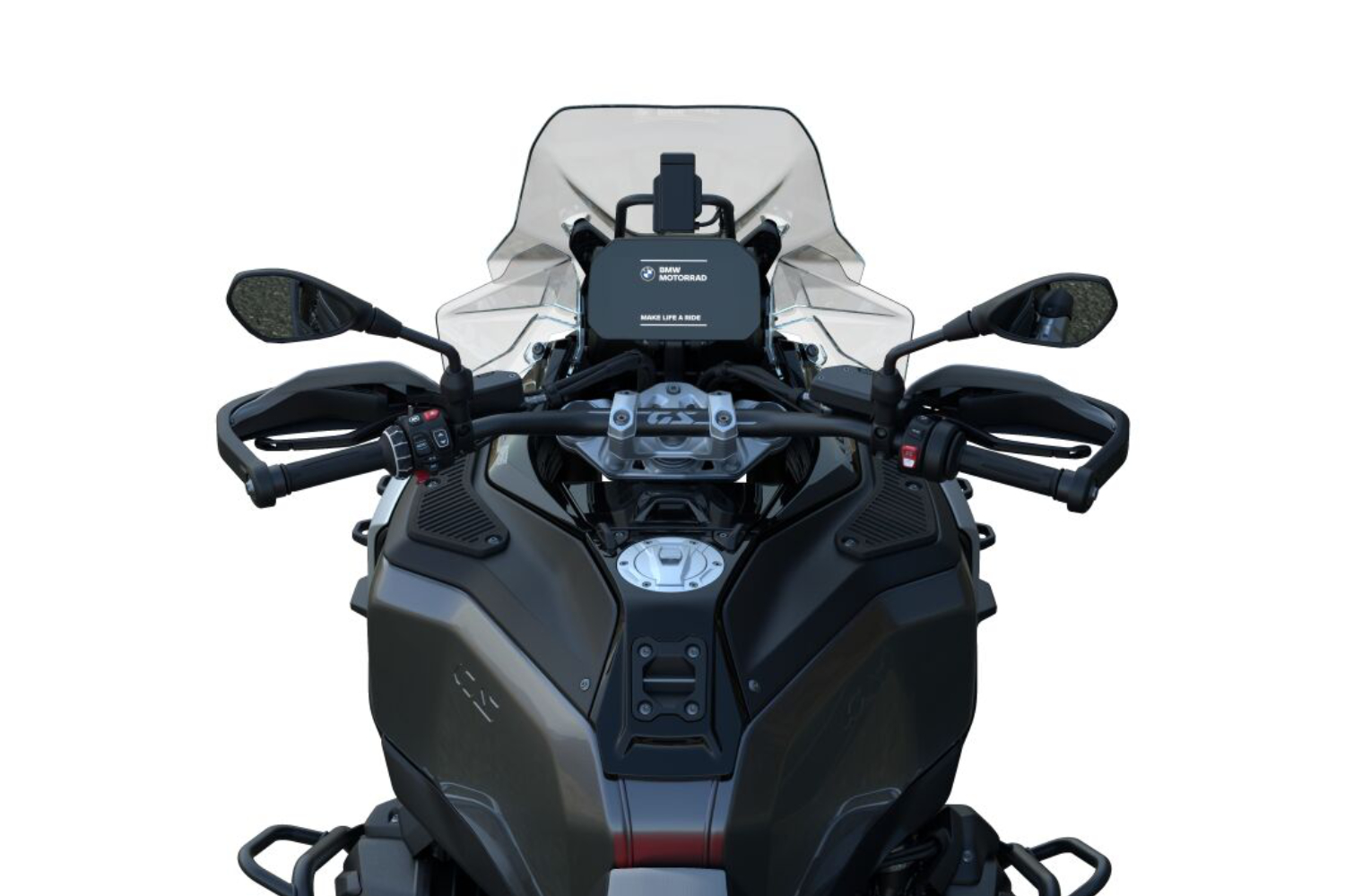 Příprava pro navigaci s držákem a uchycením pouzdra na svorce řídítek slouží k zabezpečení a integraci systému BMW Navigator do konceptu ovládání stroje. Navigační systém a možnosti připojení se dají pohodlně ovládat přes multifunkční ovladač na levé straně řídítek.