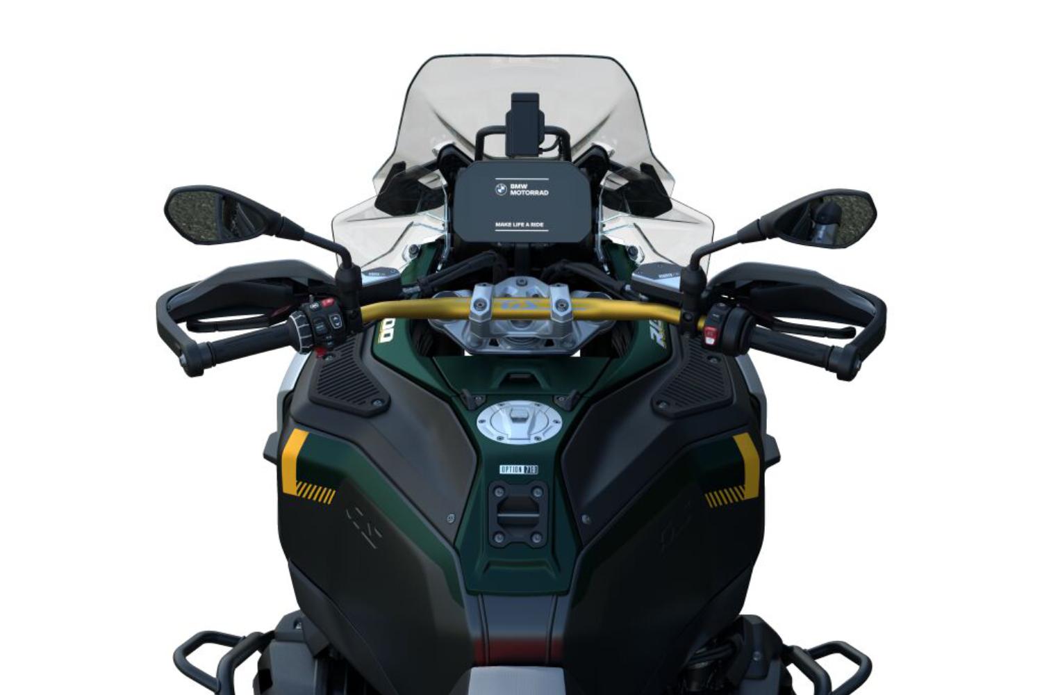 Příprava pro navigaci s držákem a uchycením pouzdra na svorce řídítek slouží k zabezpečení a integraci systému BMW Navigator do konceptu ovládání stroje. Navigační systém a možnosti připojení se dají pohodlně ovládat přes multifunkční ovladač na levé straně řídítek.