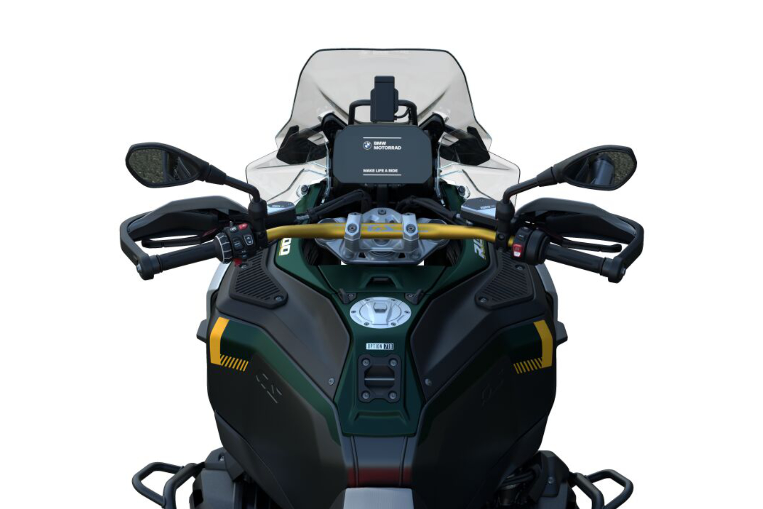 Příprava pro navigaci s držákem a uchycením pouzdra na svorce řídítek slouží k zabezpečení a integraci systému BMW Navigator do konceptu ovládání stroje. Navigační systém a možnosti připojení se dají pohodlně ovládat přes multifunkční ovladač na levé straně řídítek.