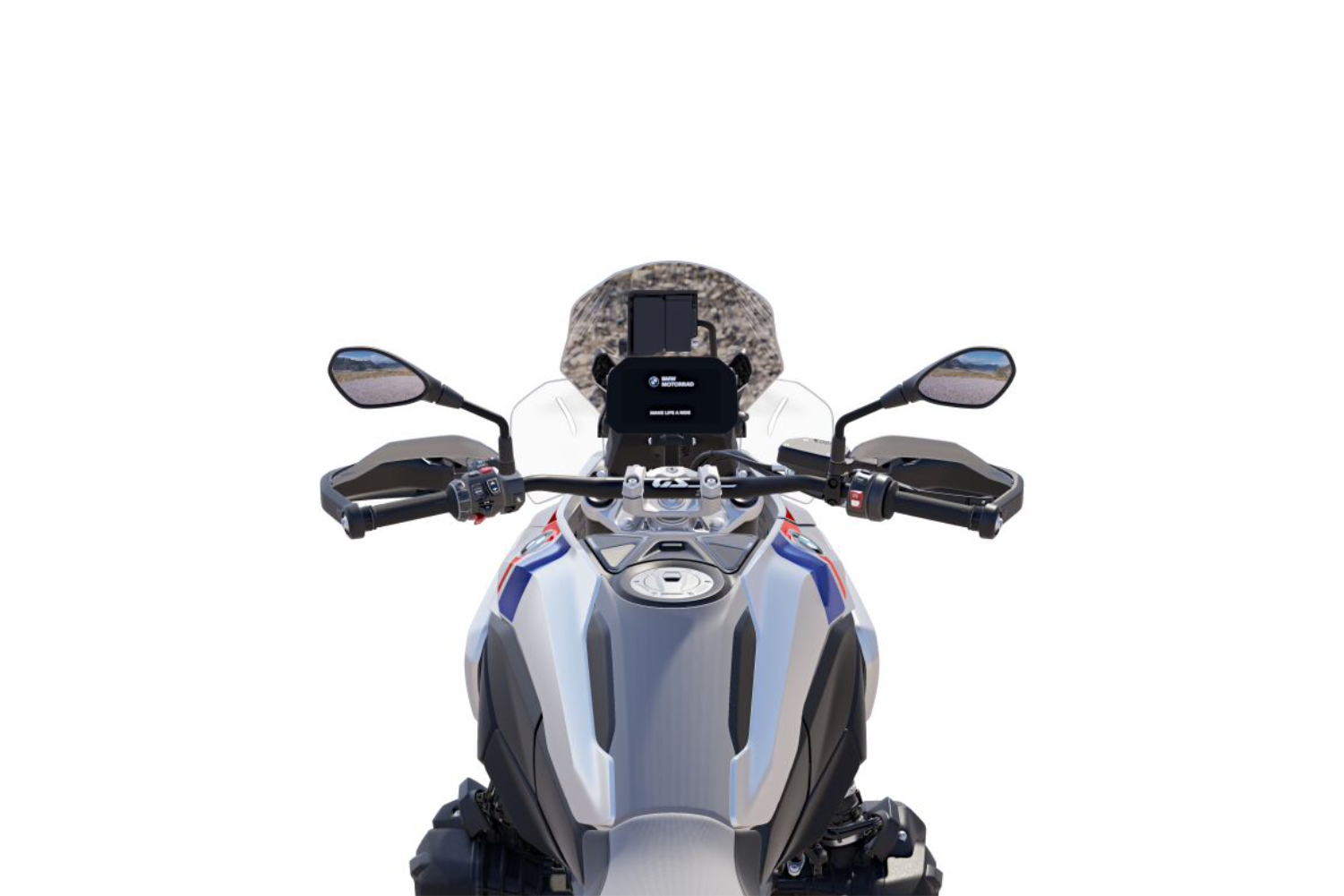 Příprava pro navigaci s držákem a uchycením pouzdra na svorce řídítek slouží k zabezpečení a integraci systému BMW Navigator do konceptu ovládání stroje. Navigační systém a možnosti připojení se dají pohodlně ovládat přes multifunkční ovladač na levé straně řídítek.