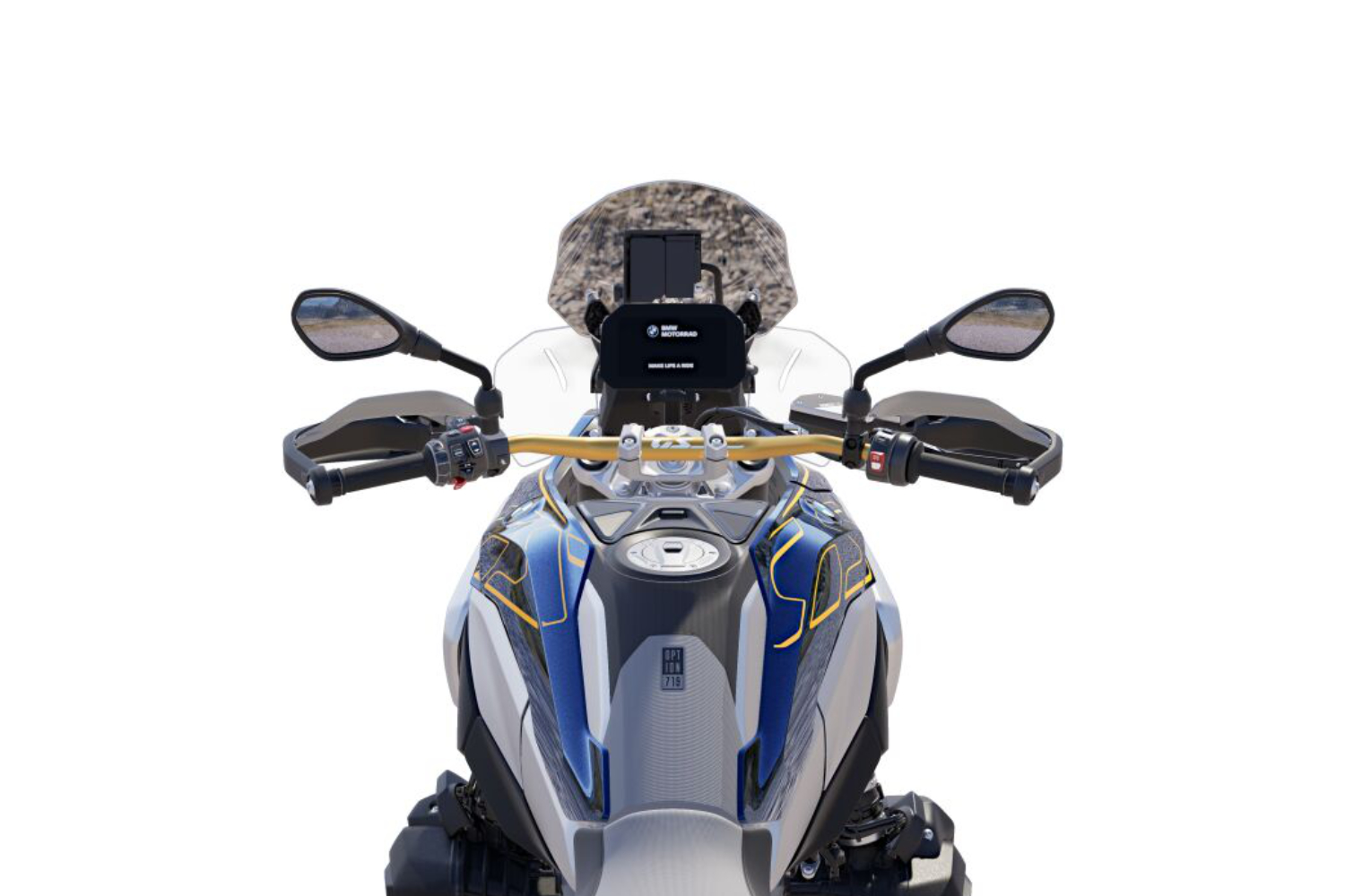 Příprava pro navigaci s držákem a uchycením pouzdra na svorce řídítek slouží k zabezpečení a integraci systému BMW Navigator do konceptu ovládání stroje. Navigační systém a možnosti připojení se dají pohodlně ovládat přes multifunkční ovladač na levé straně řídítek.