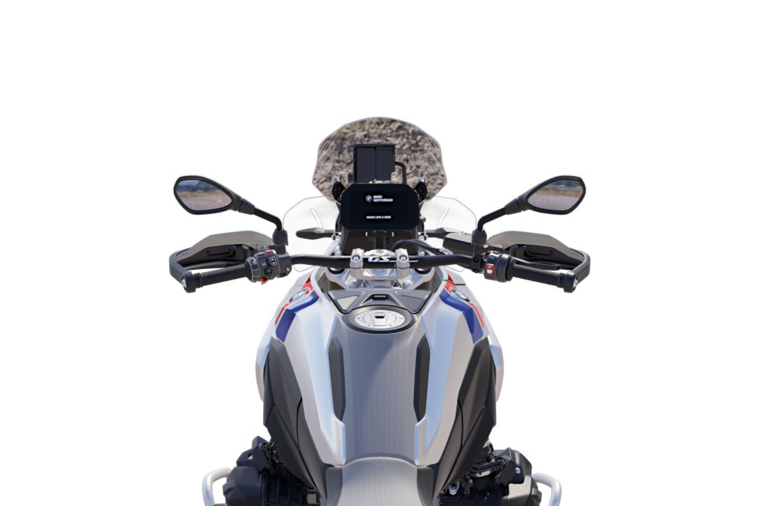 Příprava pro navigaci s držákem a uchycením pouzdra na svorce řídítek slouží k zabezpečení a integraci systému BMW Navigator do konceptu ovládání stroje. Navigační systém a možnosti připojení se dají pohodlně ovládat přes multifunkční ovladač na levé straně řídítek.
