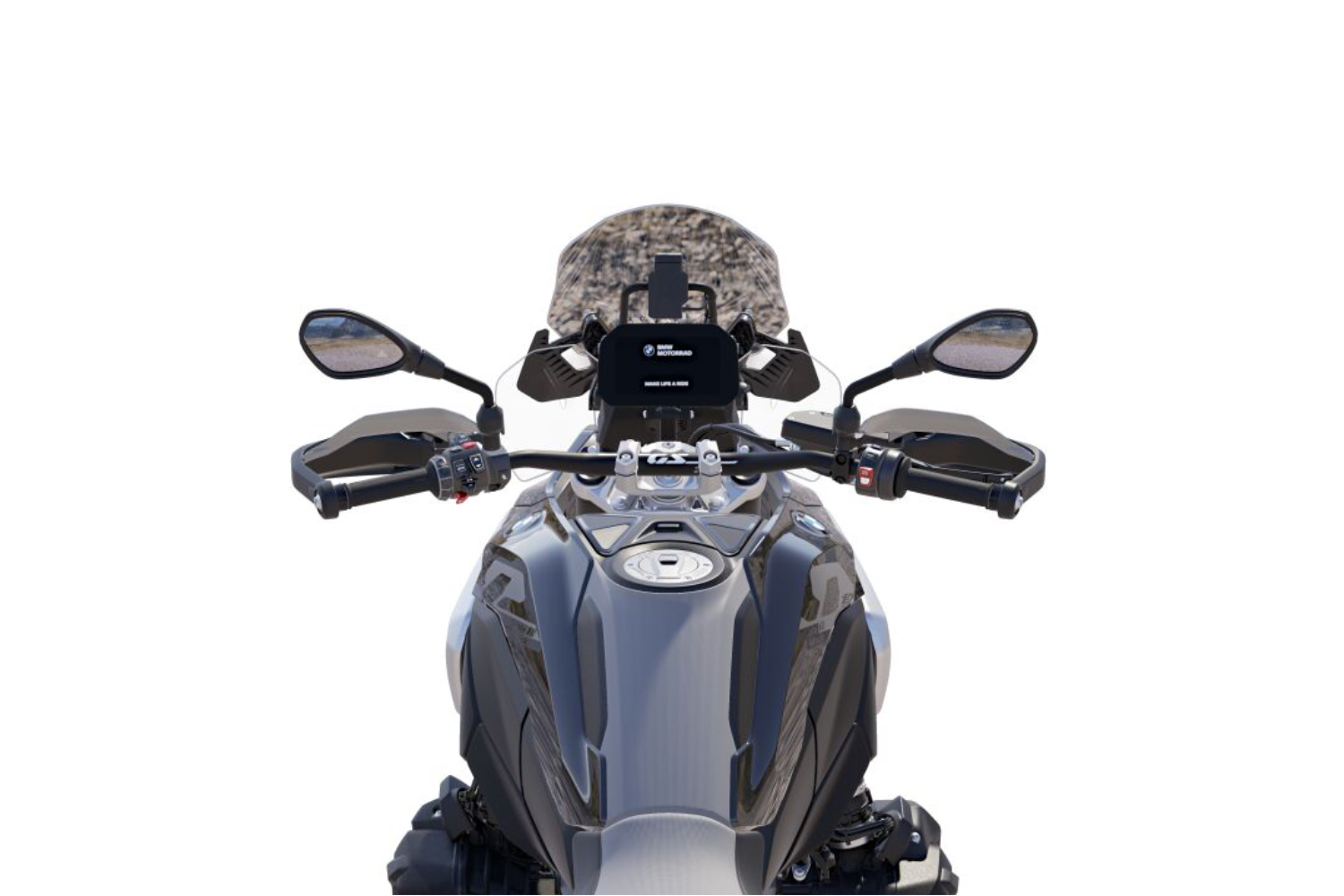 Příprava pro navigaci s držákem a uchycením pouzdra na svorce řídítek slouží k zabezpečení a integraci systému BMW Navigator do konceptu ovládání stroje. Navigační systém a možnosti připojení se dají pohodlně ovládat přes multifunkční ovladač na levé straně řídítek.