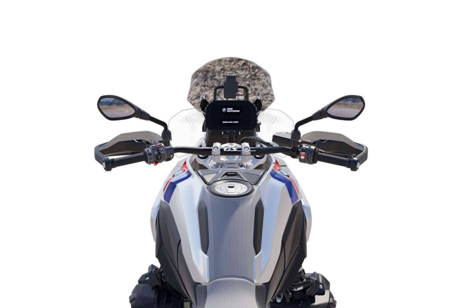 Příprava pro navigaci s držákem a uchycením pouzdra na svorce řídítek slouží k zabezpečení a integraci systému BMW Navigator do konceptu ovládání stroje. Navigační systém a možnosti připojení se dají pohodlně ovládat přes multifunkční ovladač na levé straně řídítek.