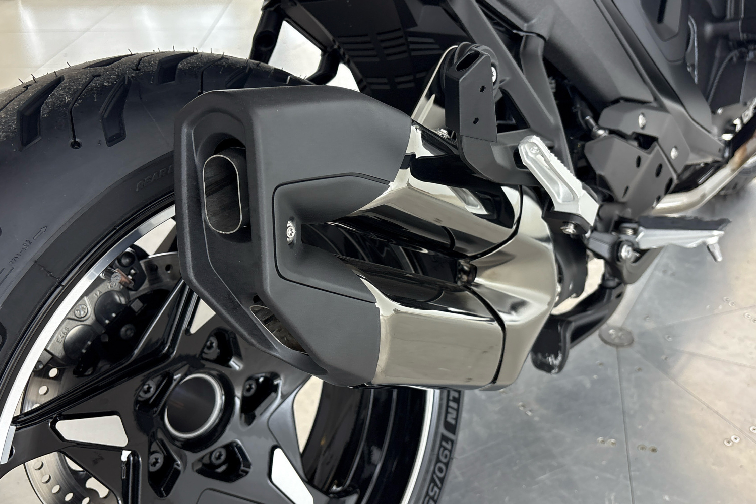 Výfukový systém motocyklu lze vizuálně vylepšit pomocí designové varianty zadního tlumiče výfuku. V kombinaci s chromovaným sběrným výfukovým potrubím pochromovaný zadní tlumič výfuku propůjčuje motocyklu prémiový vzhled.