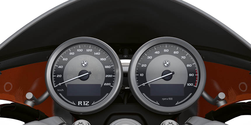 Nekompromisní styl dotažený až do toho nejmenšího detailu. Zábavu z jízdy vám na modelu R 12 S pomůže přesně měřit klasický dvojitý kulatý tachometr. Tento elegantní prvek doplňuje celkový design motocyklu a vnáší do zorného pole jezdce atraktivní nádech moderního retra.