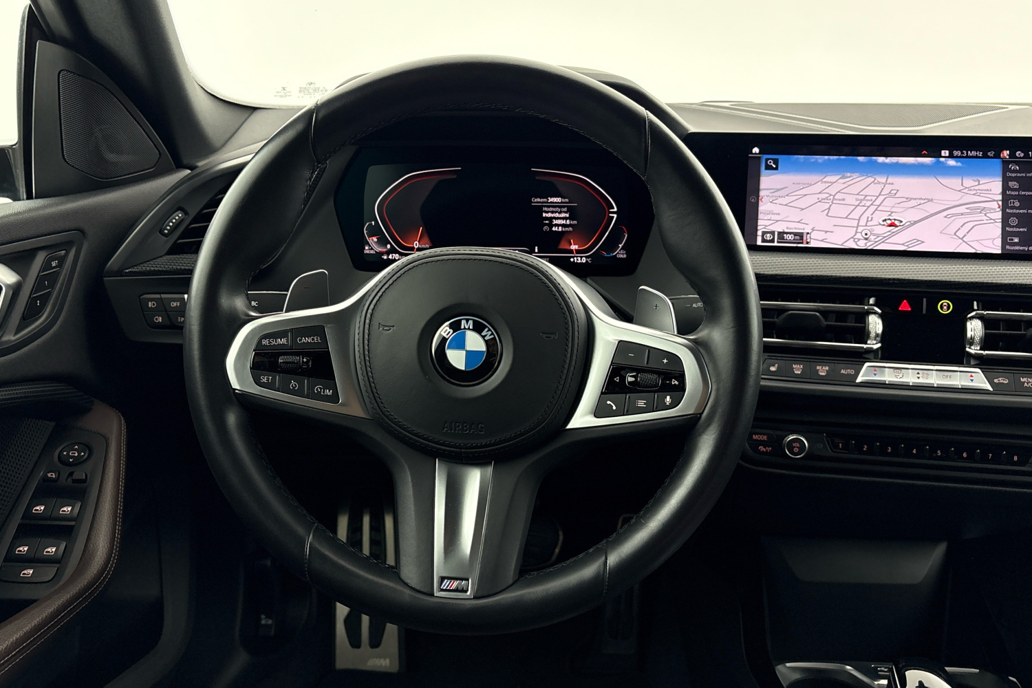 M kožený volant s multifunkčními tlačítky vyniká sportovním tříramenným provedením a logem M. Volant s věncem z černé kůže Walknappa a vybráním na palce poskytuje bezprostřední zážitek ze sportovní jízdy.