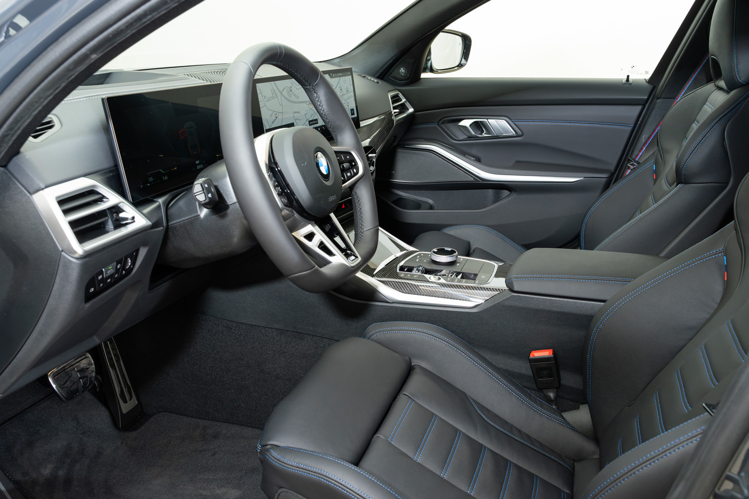 M bezpečnostní pásy jsou vybavené předpínači a omezovači tahu. Mají vyšitou klasickou M trikoloru, která dává interiéru specifický charakter.