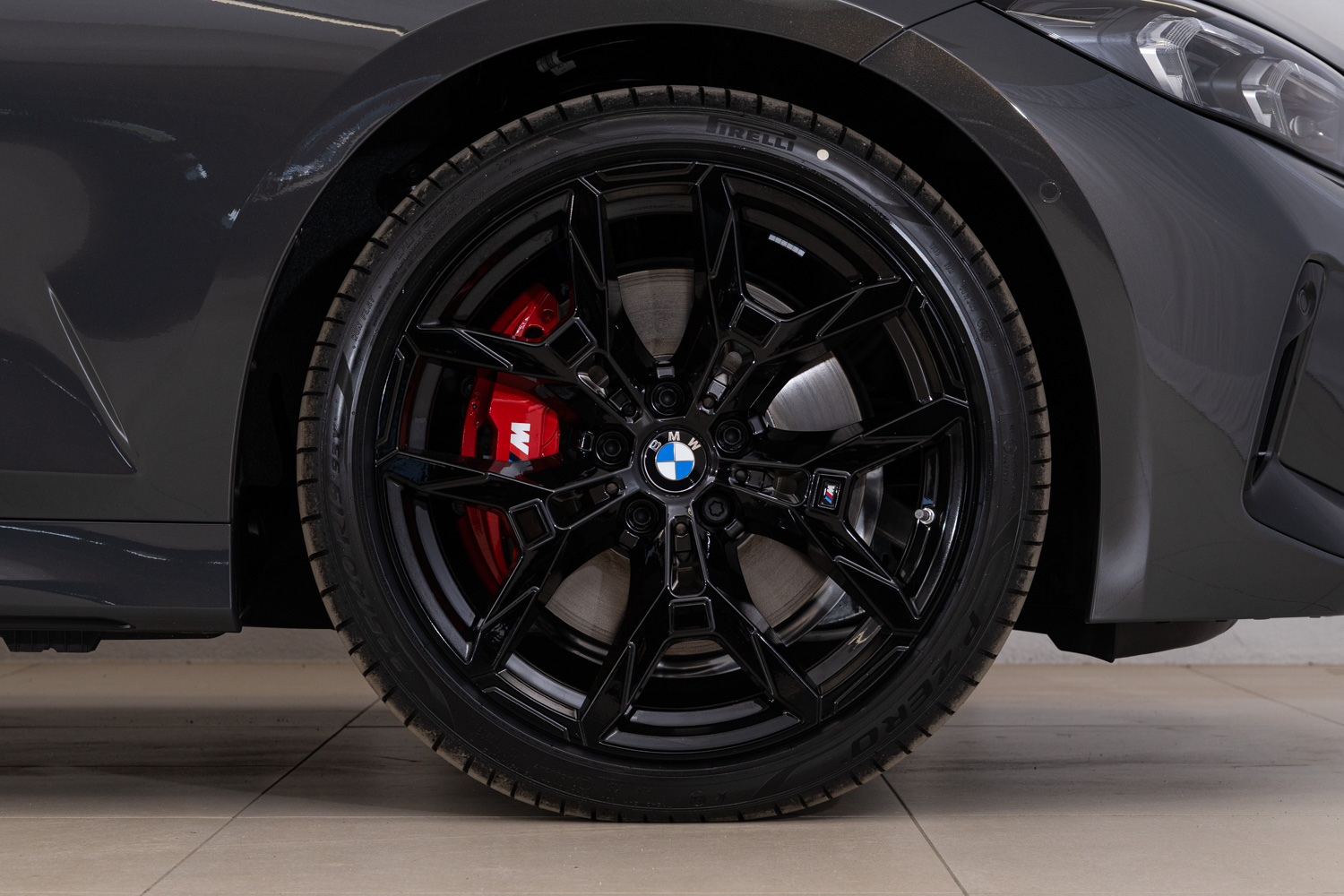 Vůz je vybaven vysokovýkonnými M sportovními brzdami, jejichž účinnost je přizpůsobena jeho dynamickému potenciálu. Za všech okolností zajišťují mimořádné zpomalení, a to i při velmi sportovním stylu jízdy. Pevné třmeny v exkluzivním červeném provedení s logem M představují nápadný vizuální prvek. Přední hliníkové třmeny mají čtyři pístky, zatímco zadní plovoucí třmeny mají každý po jednom pístku. Mimořádný brzdný výkon zajišťují velké a přitom lehké kotouče s vnitřním chlazením.