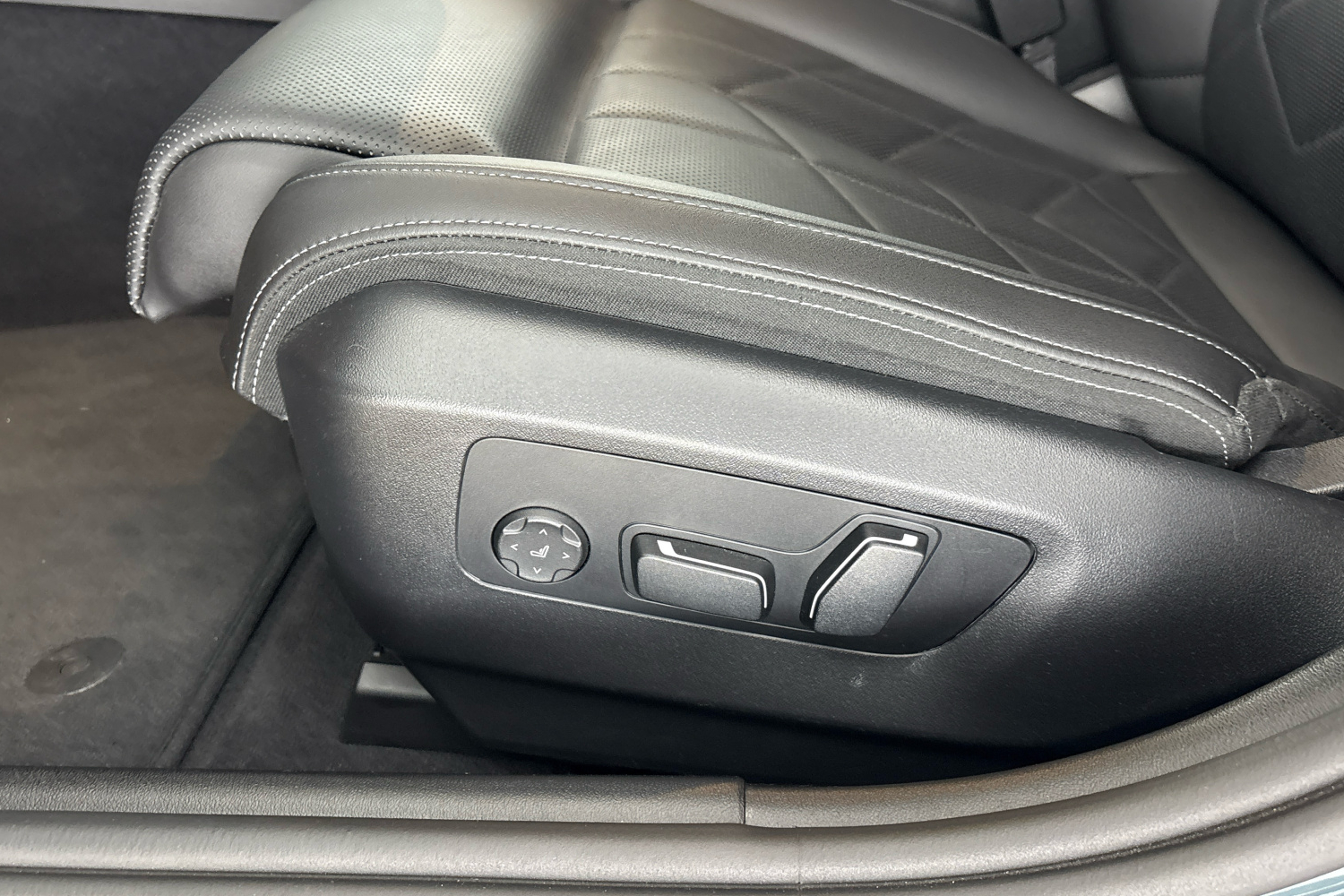 Kromě toho lze podle individuálních požadavků nastavit hloubku sedáku, podporu stehen, stejně jako polohu a tvar bederní opěrky. Ta slouží k uvolnění napětí ve spodní části páteře a je tvořena zvláště pohodlným a mnohostranně nastavitelným systémem se vzduchovými komorami. Aktivní opěrky hlavy zajišťují mimořádně bezpečnou polohu sezení. Automaticky se nastaví s polohou sezení a aktivně chrání cestujícího před rizikem hyperflexe krku při nárazu zezadu. Přední opěrka hlavy se sklápí mechanicky. Na ovládací prvky na boku středové loketní opěrky lze snadno dosáhnout palcem a ukazováčkem. Paměťová funkce pro sedadlo řidiče, zpětná zrcátka a polohu sloupku řízení umožňuje uložit do paměti dvojici různých nastavení.
