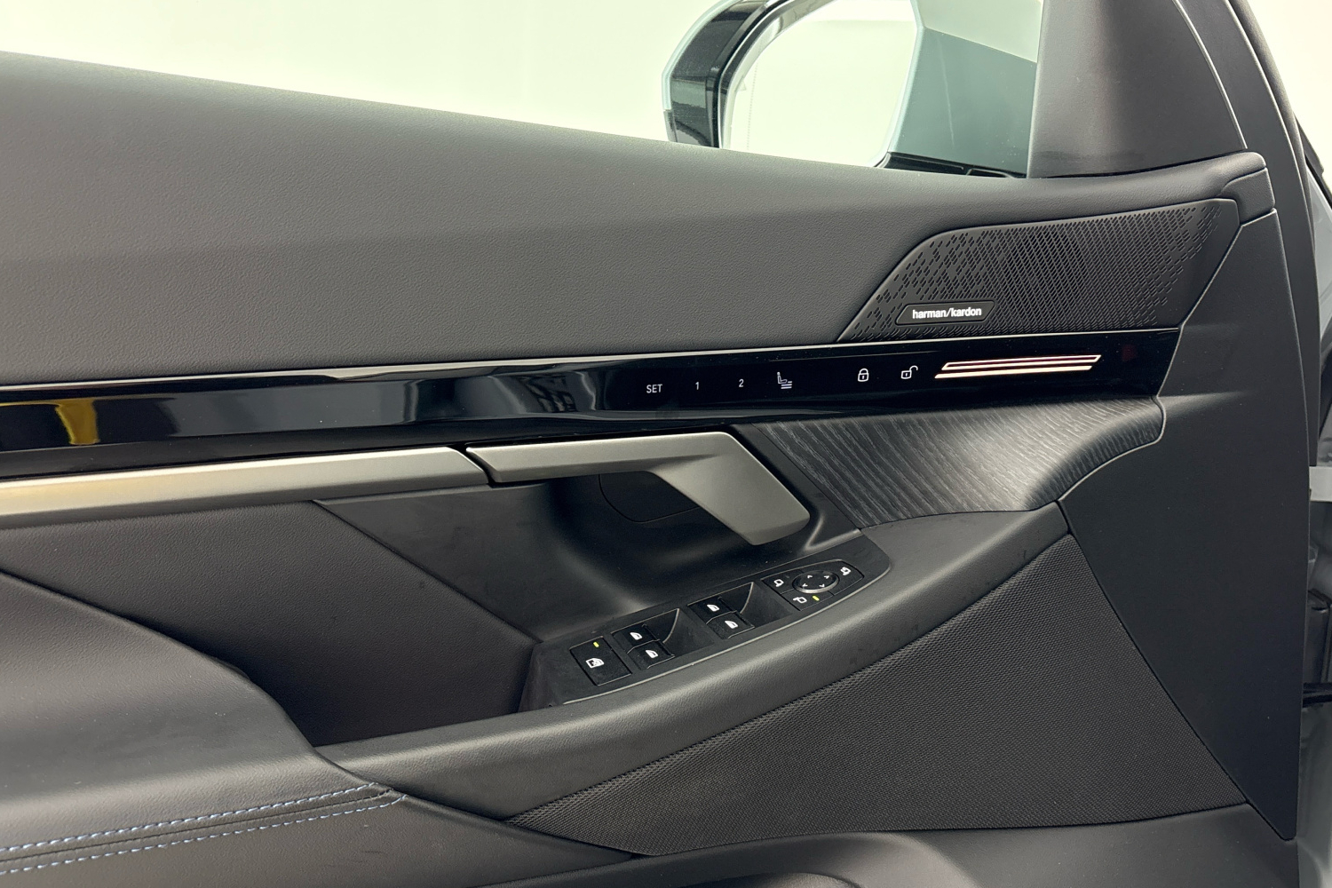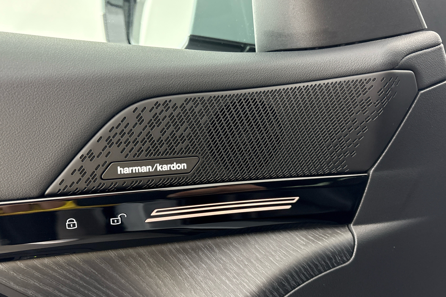 Oba centrální subwoofery jsou umístěny pod předními sedadly. Mřížky všech reproduktorů jsou vyrobeny z kovu. Nápis Harman/Kardon v hliníkovém provedení na výškových reproduktorech v základnách zrcátek přispívá k elegantnímu vzhledu interiéru a je příslibem výjimečné kvality zvukového podání.