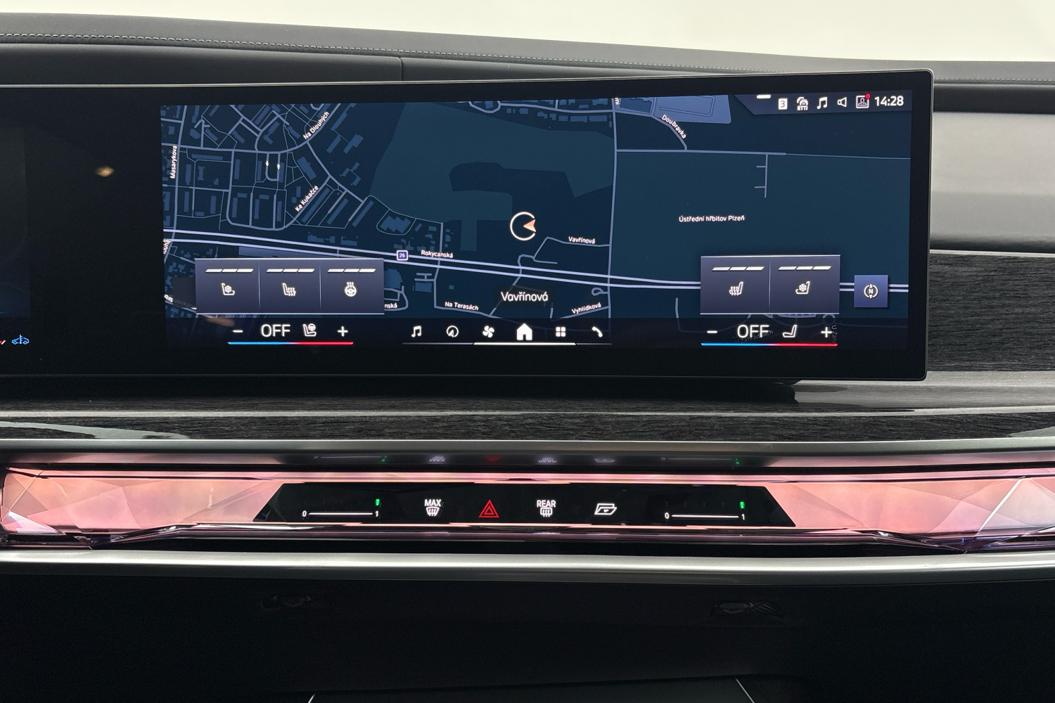 Pro každé sedadlo lze individuálně nastavit jednu ze tří úrovní teploty. Vyhřívání boční loketní opěrky lze individuálně regulovat prostřednictvím systému iDrive nebo dotykové obrazovky. Zvolené nastavení pro vyhřívání sedadel upravuje také teplotu odpovídající loketní opěrky a volantu. Vyhřívání se aktivuje tlačítkem vyhřívání sedadla, v menu systému iDrive nebo pomocí volitelně dostupného tabletu BMW Touch Command.