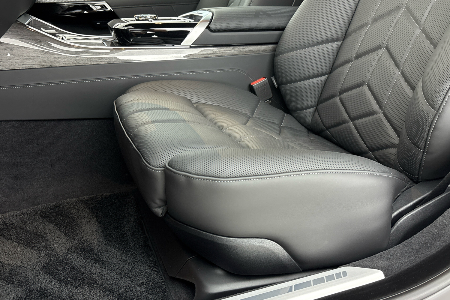 Na straně spolujezdce v zadní části vozu pak středová konzola Executive Lounge nabízí dva integrované držáky nápojů, včetně úložného prostoru a dalšího prostoru pod loketní opěrkou. Nechybí ani sklápěcí stolek, který lze vertikálně naklápět a horizontálně vysouvat.