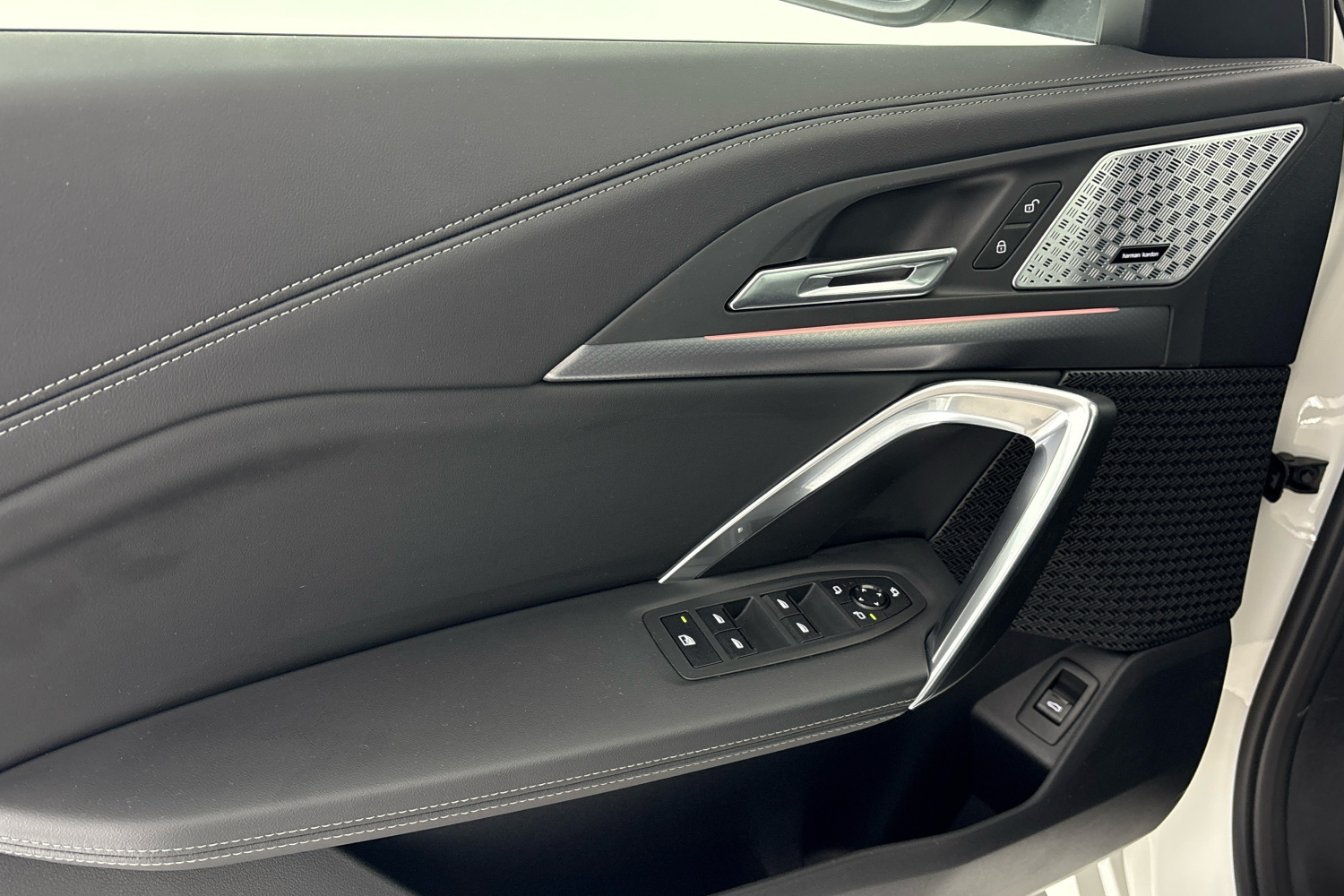 Oba centrální subwoofery jsou umístěny pod předními sedadly. Mřížky všech reproduktorů jsou vyrobeny z kovu. Nápis Harman/Kardon v hliníkovém provedení na výškových reproduktorech v základnách zrcátek přispívá k elegantnímu vzhledu interiéru a je příslibem výjimečné kvality zvukového podání.