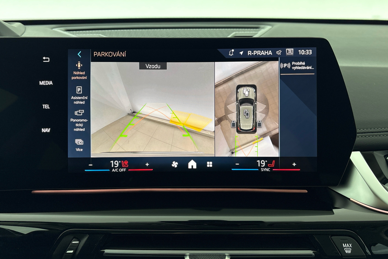 Při manuálním parkování pak doplňkové senzory sledují oblasti po stranách vozu a zobrazují překážky na kontrolním displeji. Funkce nouzového brzdění v aktivním PDC pomáhá řidiči, když je na parkovací místo nutné zacouvat, a přispívá tak k prevenci kolizí a snížení závažnosti nehod. Parkovací asistent zcela automaticky zaparkuje vůz na parkovacích místech, která jsou umístěna podélně nebo příčně k vozovce, a z podélných parkovacích míst dokáže rovněž automaticky vyjet. Systém při jízdě nízkou rychlostí (menší než 35 km/h) a v maximální vzdálenosti 1,5 m od řady zaparkovaných vozidel měří potenciální parkovací místa. Jakmile systém nalezne dostatečně velký prostor, řidič jednoduše zapne směrovku a parkovací asistent převezme řízení, řazení a ovládání plynového pedálu. Vy musíte pouze sledovat celý proces a používat brzdový pedál. Pokud jste při manévrování jeli směrem dopředu, couvací asistent si tuto trasu až do vzdálenosti 50 m zapamatuje a pokud si to budete přát, může s vozem vycouvat zpět stejnou cestou.
