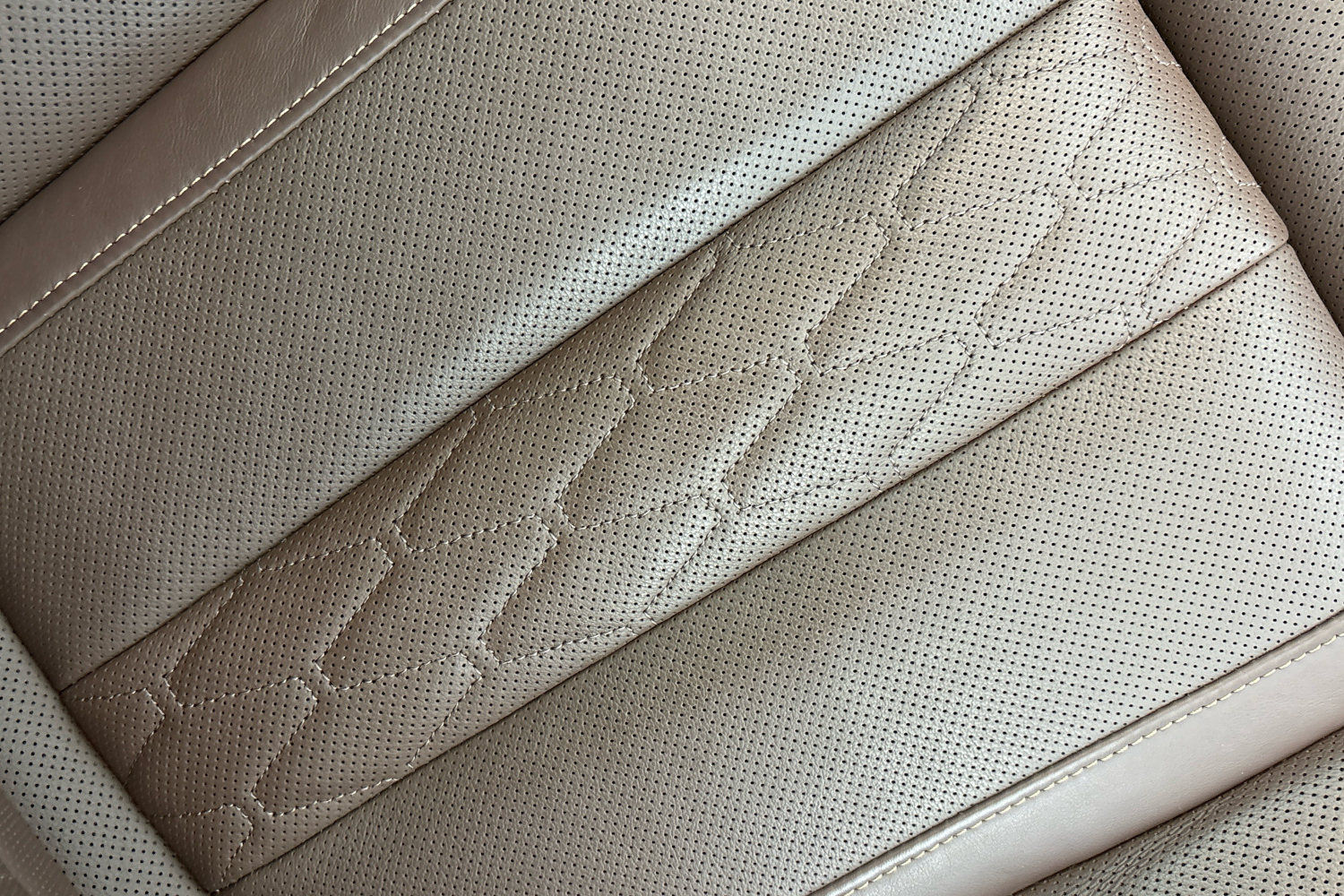 Kůží potažená přístrojová deska, včetně panelů dveří, s výraznými dvojitými švy v kontrastní barvě propůjčuje interiéru noblesní atmosféru.