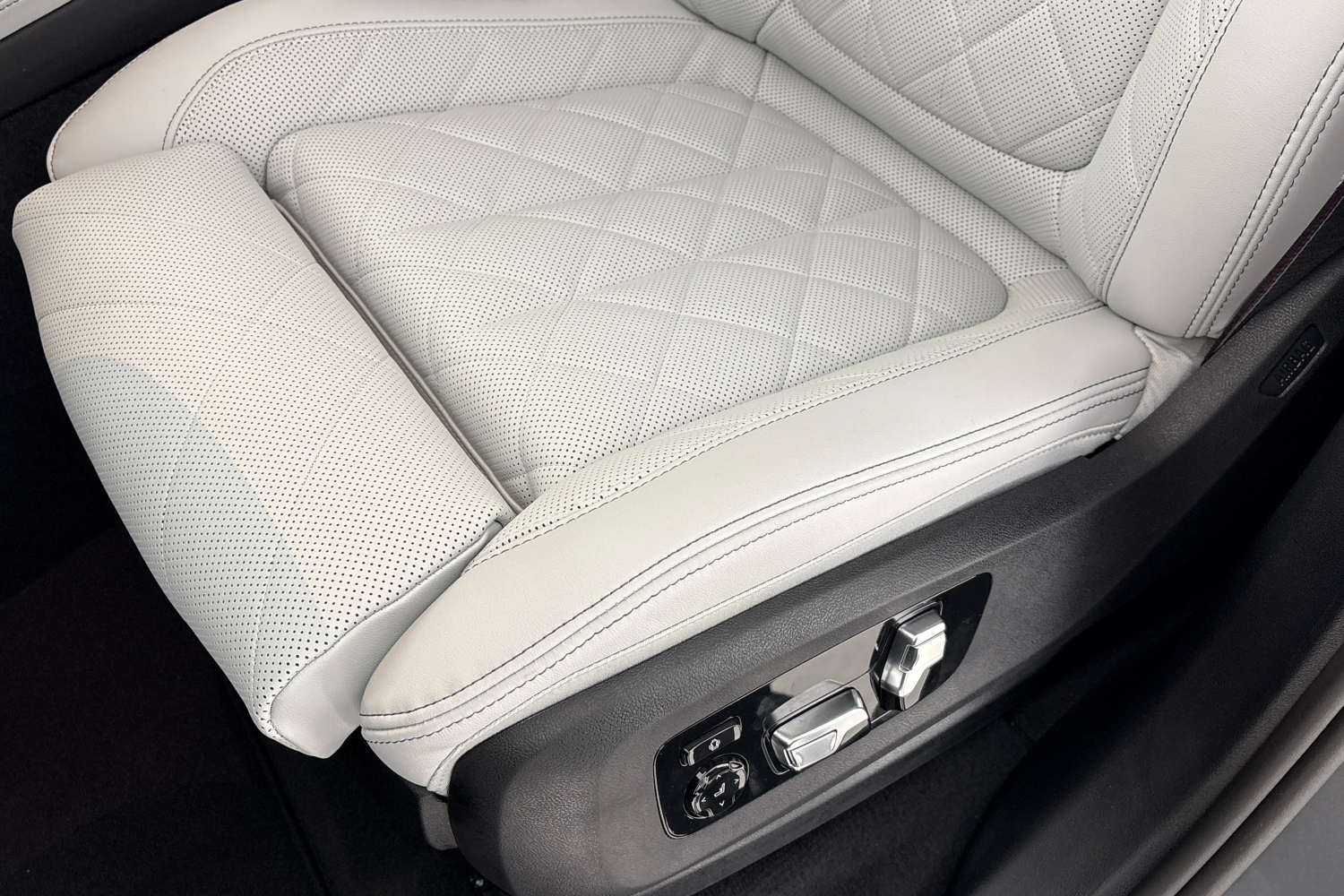 Kromě toho lze podle individuálních požadavků nastavit hloubku sedáku, podporu stehen, stejně jako polohu a tvar bederní opěrky. Ta slouží k uvolnění napětí ve spodní části páteře a je tvořena zvláště pohodlným a mnohostranně nastavitelným systémem se vzduchovými komorami. Aktivní opěrky hlavy zajišťují mimořádně bezpečnou polohu sezení. Automaticky se nastaví s polohou sezení a aktivně chrání cestujícího před rizikem hyperflexe krku při nárazu zezadu. Přední opěrka hlavy se sklápí mechanicky. Na ovládací prvky na boku středové loketní opěrky lze snadno dosáhnout palcem a ukazováčkem. Paměťová funkce pro sedadlo řidiče, zpětná zrcátka a polohu sloupku řízení umožňuje uložit do paměti dvojici různých nastavení.
