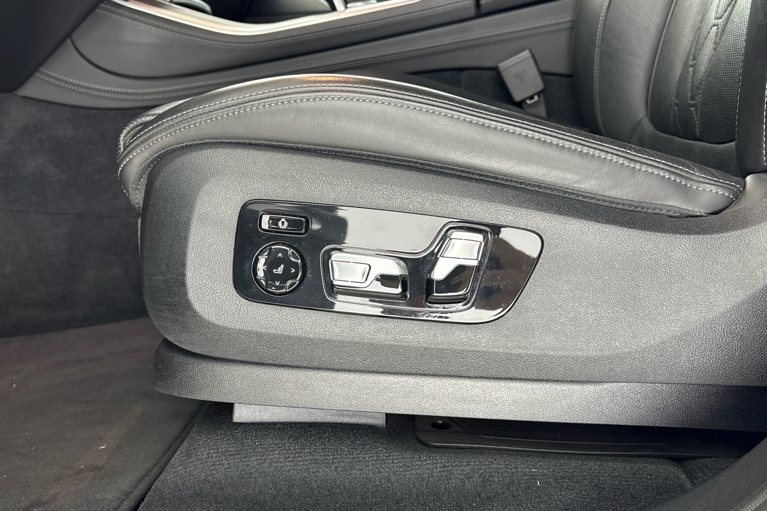 Kromě toho lze podle individuálních požadavků nastavit hloubku sedáku, podporu stehen, stejně jako polohu a tvar bederní opěrky. Ta slouží k uvolnění napětí ve spodní části páteře a je tvořena zvláště pohodlným a mnohostranně nastavitelným systémem se vzduchovými komorami. Aktivní opěrky hlavy zajišťují mimořádně bezpečnou polohu sezení. Automaticky se nastaví s polohou sezení a aktivně chrání cestujícího před rizikem hyperflexe krku při nárazu zezadu. Přední opěrka hlavy se sklápí mechanicky. Na ovládací prvky na boku středové loketní opěrky lze snadno dosáhnout palcem a ukazováčkem. Paměťová funkce pro sedadlo řidiče, zpětná zrcátka a polohu sloupku řízení umožňuje uložit do paměti dvojici různých nastavení.