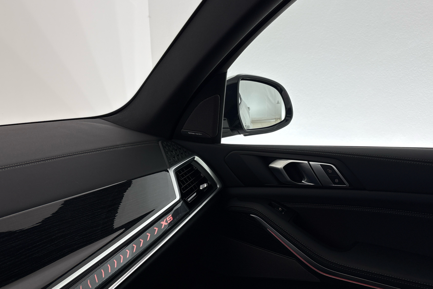 Reproduktory prvotřídní kvality se vyznačují šestihrannou perforovanou deskou v tmavém provedení Titan. Centrální výškový a středový reproduktor jsou umístěny uprostřed přístrojové desky. Dva výškové reproduktory v úchytech zpětných zrcátek a dva středové reproduktory v panelech předních dveří jsou označeny logem Harman Kardon, stejně jako středové reproduktory v obložení zadních dveří. Dva centrální subwoofery pod předními sedadly zaujmou svým objemem a dva výškové reproduktory a středové reproduktory v čalounění stropu zajišťují vynikající poslech i cestujícím na zadních sedadlech. Zvuk se upravuje pomocí časem prověřeného ergonomického ovladače iDrive a kontrolního displeje.