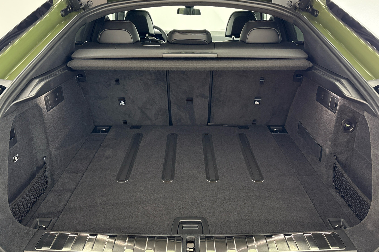 M čalounění stropu kvalitní Alcantarou v barvě antracitu spolu s barevně sladěnými slunečními clonami, zadním platem a sloupky karoserie obloženými Alcantarou dodává vnitřnímu prostoru dojem vzrušující propracovanosti.