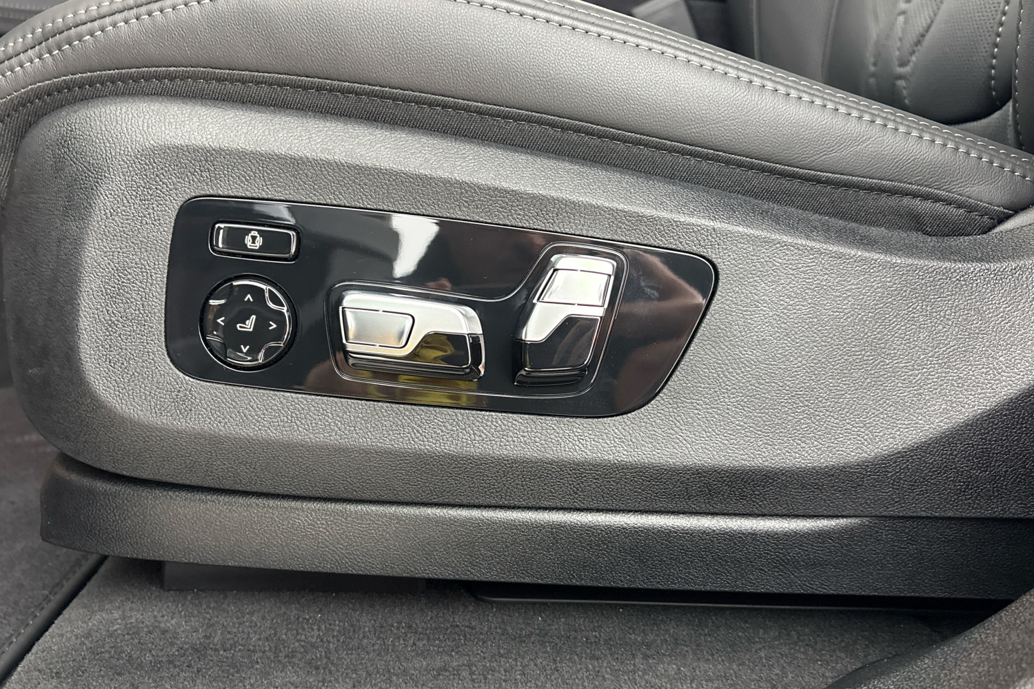 Kromě toho lze podle individuálních požadavků nastavit hloubku sedáku, podporu stehen, stejně jako polohu a tvar bederní opěrky. Ta slouží k uvolnění napětí ve spodní části páteře a je tvořena zvláště pohodlným a mnohostranně nastavitelným systémem se vzduchovými komorami. Aktivní opěrky hlavy zajišťují mimořádně bezpečnou polohu sezení. Automaticky se nastaví s polohou sezení a aktivně chrání cestujícího před rizikem hyperflexe krku při nárazu zezadu. Přední opěrka hlavy se sklápí mechanicky. Na ovládací prvky na boku středové loketní opěrky lze snadno dosáhnout palcem a ukazováčkem. Paměťová funkce pro sedadlo řidiče, zpětná zrcátka a polohu sloupku řízení umožňuje uložit do paměti dvojici různých nastavení.