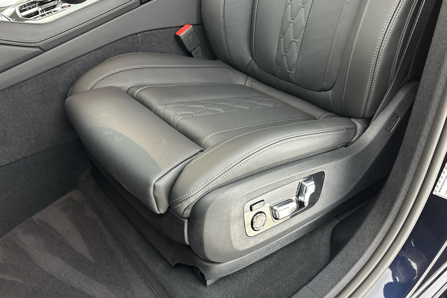 M bezpečnostní pásy jsou vybavené předpínači a omezovači tahu. Mají vyšitou klasickou M trikoloru, která dává interiéru specifický charakter.