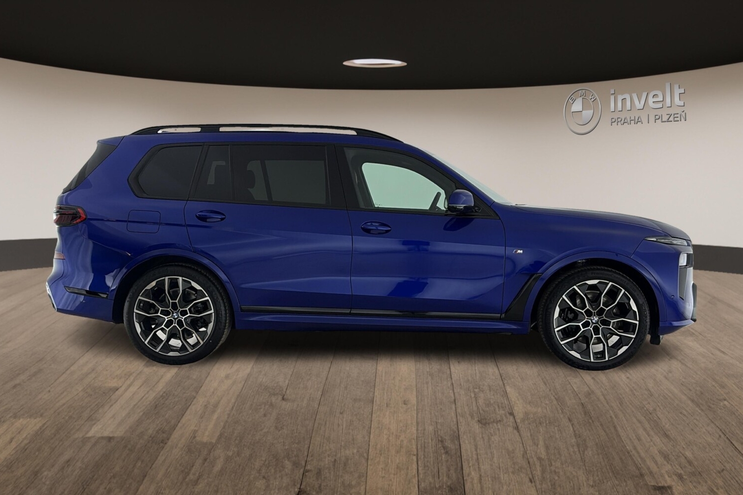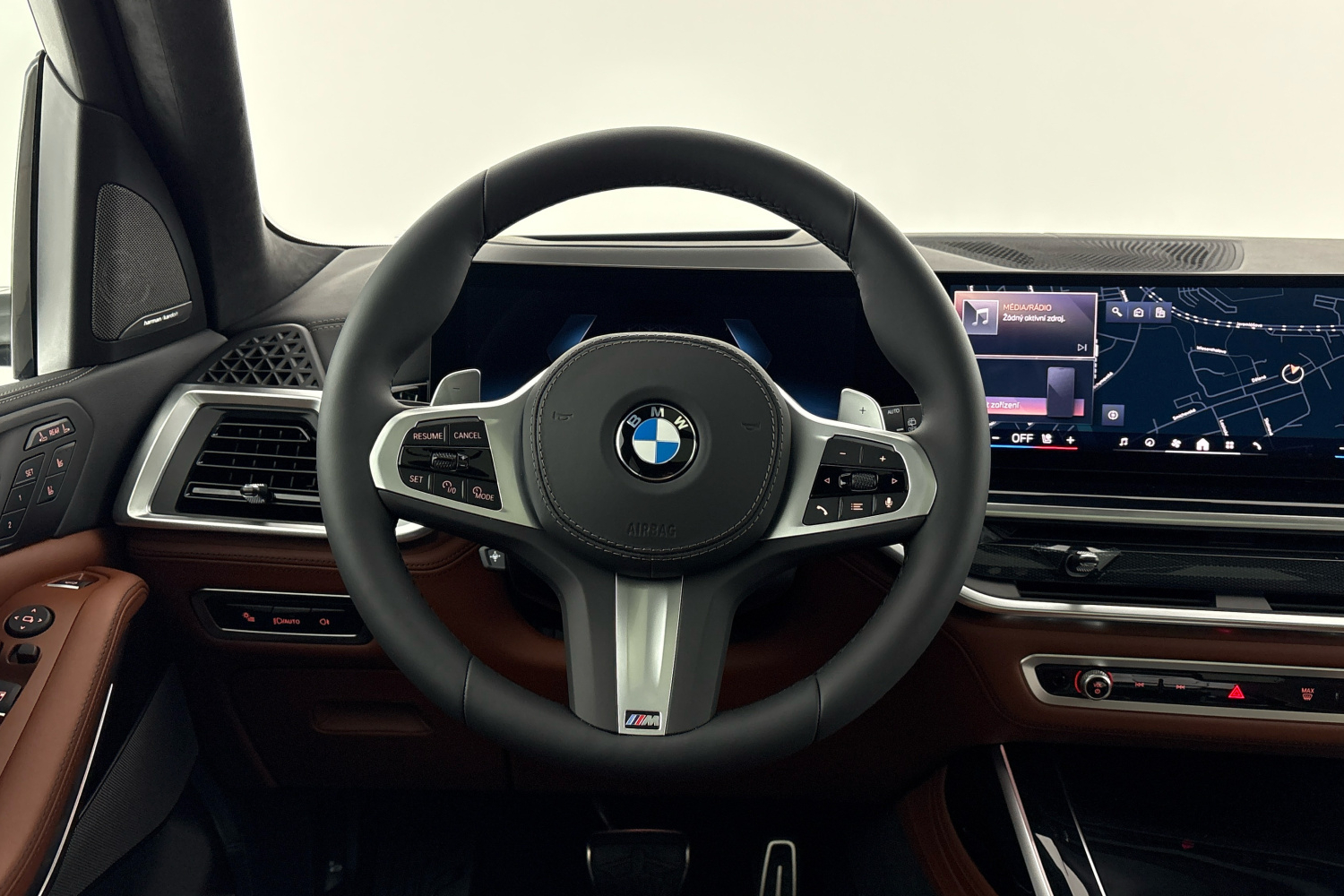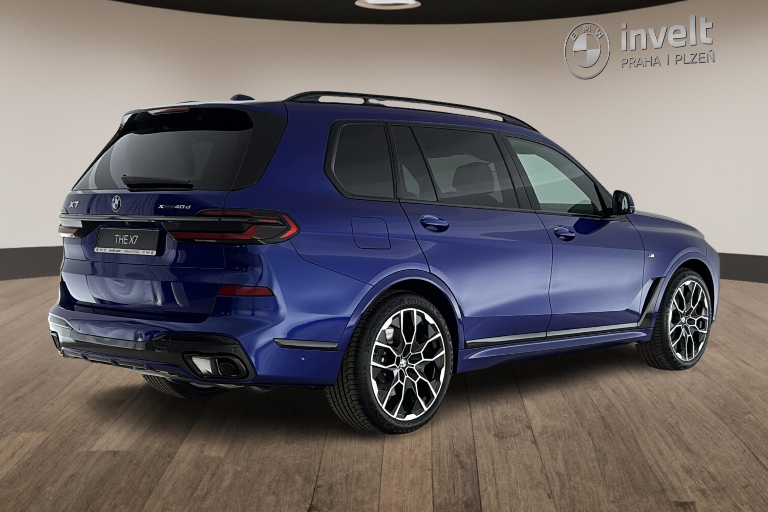 Nové BMW X7 xDrive40d fascinuje od prvního setkání kombinací nekompromisní síly, luxusního komfortu a výrazného designového stylu. Z designu přední části opírající se o klasické ikonické prvky BMW a osvětlenou masku chladiče BMW Iconic Glow vyzařuje sebevědomý charakter. Na první pohled uvidíte novinku rozdělená světla. Mimořádně živý zážehový 6válec BMW TwinPower Turbo poskytuje výkon 250/340 kW/HP-KW-HP kW/HP a maximální rychlost 245 km/h, standardně dodávané vzduchové odpružení na obou nápravách zajišťuje na každém povrchu mimořádný komfort. Zaujme barva BMW Individual - lak na přání a design interiéru BMW Individual kožené čalounění Merino "Tartufo / Black".