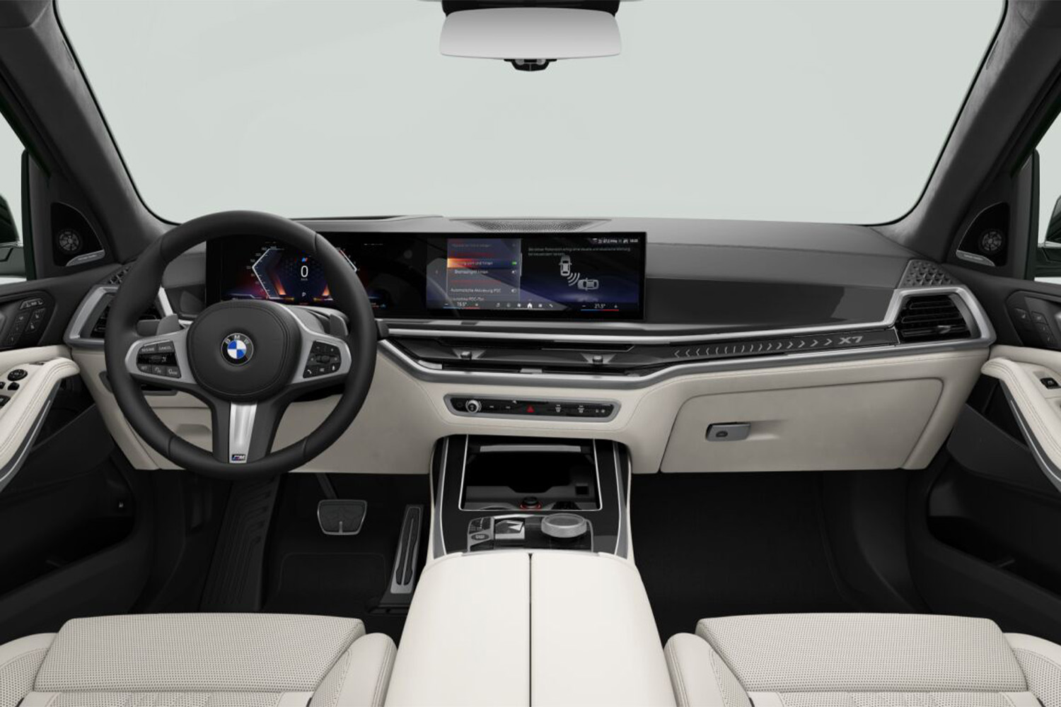 Nové BMW X7 xDrive40d fascinuje od prvního setkání kombinací nekompromisní síly, luxusního komfortu a výrazného designového stylu. Z designu přední části opírající se o klasické ikonické prvky BMW a osvětlenou masku chladiče BMW Iconic Glow vyzařuje sebevědomý charakter. Na první pohled uvidíte novinku rozdělená světla. Mimořádně živý zážehový 6válec BMW TwinPower Turbo poskytuje výkon 250/340 kW/HP-KW-HP kW/HP a maximální rychlost 245 km/h, standardně dodávané vzduchové odpružení na obou nápravách zajišťuje na každém povrchu mimořádný komfort. Zaujme barva BMW Individual - lak na přání a design interiéru BMW Individual kůže Merino "Ivory White/Black"