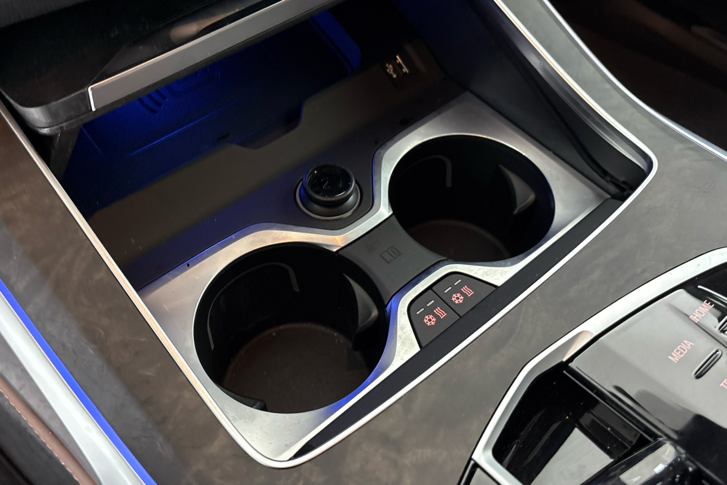 Držáky nápojů s ovládáním teploty ve středové konzole lze odděleně vyhřívat nebo chladit. Požadované chlazení nebo vyhřívání nápojů se aktivuje pomocí jednotlivých tlačítek na levé a pravé straně držáku nápojů. Barevné prostorové osvětlení uvnitř držáku také naznačuje, zda se nápoje zahřívají (červená) nebo chladí (modrá barva). Díky tomu mají nápoje při jízdě vždy požadovanou teplotu.