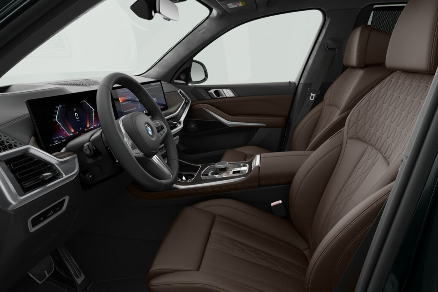 Nové BMW X7 xDrive40d fascinuje od prvního setkání kombinací nekompromisní síly, luxusního komfortu a výrazného designového stylu. Z designu přední části opírající se o klasické ikonické prvky BMW a osvětlenou masku chladiče BMW Iconic Glow vyzařuje sebevědomý charakter. Na první pohled uvidíte novinku rozdělená světla. Mimořádně živý zážehový 6válec BMW TwinPower Turbo poskytuje výkon 250/340 kW/HP-KW-HP kW/HP a maximální rychlost 245 km/h, standardně dodávané vzduchové odpružení na obou nápravách zajišťuje na každém povrchu mimořádný komfort. Zaujme barva a design interiéru BMW Individual kůže Merino "Coffee/Black".