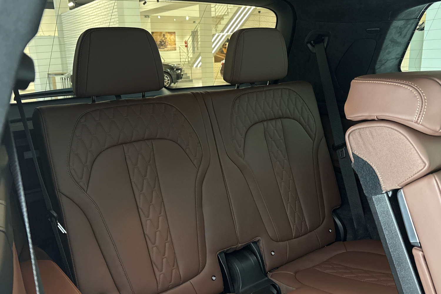 Nové BMW X7 xDrive40d fascinuje od prvního setkání kombinací nekompromisní síly, luxusního komfortu a výrazného designového stylu. Z designu přední části opírající se o klasické ikonické prvky BMW a osvětlenou masku chladiče BMW Iconic Glow vyzařuje sebevědomý charakter. Na první pohled uvidíte novinku rozdělená světla. Mimořádně živý zážehový 6válec BMW TwinPower Turbo poskytuje výkon 250/340 kW/HP-KW-HP kW/HP a maximální rychlost 245 km/h, standardně dodávané vzduchové odpružení na obou nápravách zajišťuje na každém povrchu mimořádný komfort. Zaujme barva a design interiéru BMW Individual kůže Merino "Coffee/Black".