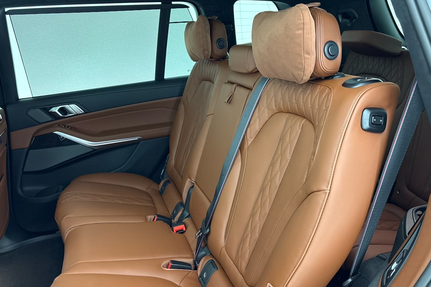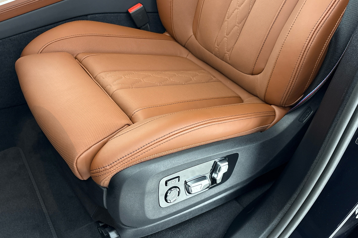 M bezpečnostní pásy jsou vybavené předpínači a omezovači tahu. Mají vyšitou klasickou M trikoloru, která dává interiéru specifický charakter.