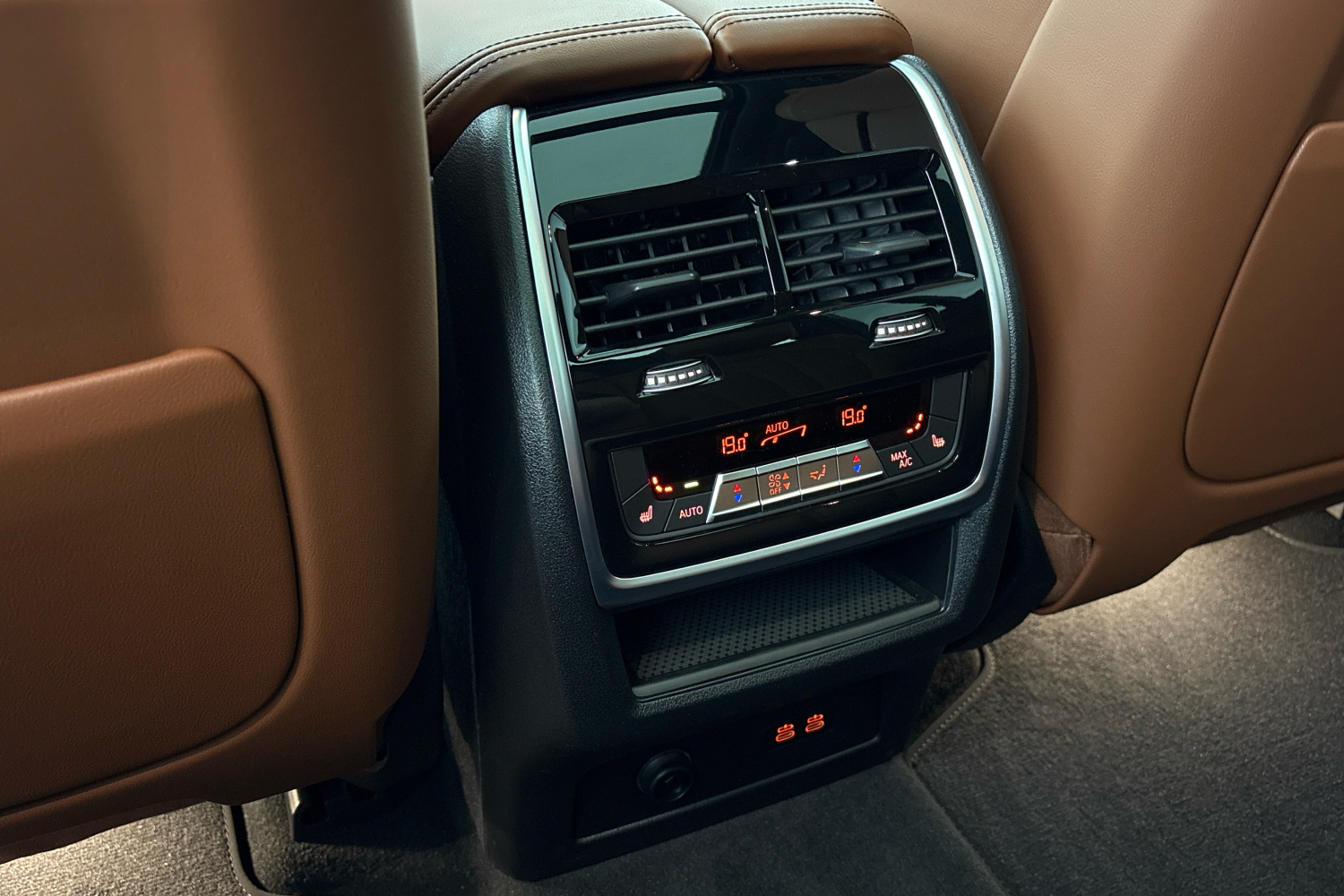 Držáky nápojů s ovládáním teploty ve středové konzole lze odděleně vyhřívat nebo chladit. Požadované chlazení nebo vyhřívání nápojů se aktivuje pomocí jednotlivých tlačítek na levé a pravé straně držáku nápojů. Barevné prostorové osvětlení uvnitř držáku také naznačuje, zda se nápoje zahřívají (červená) nebo chladí (modrá barva). Díky tomu mají nápoje při jízdě vždy požadovanou teplotu.