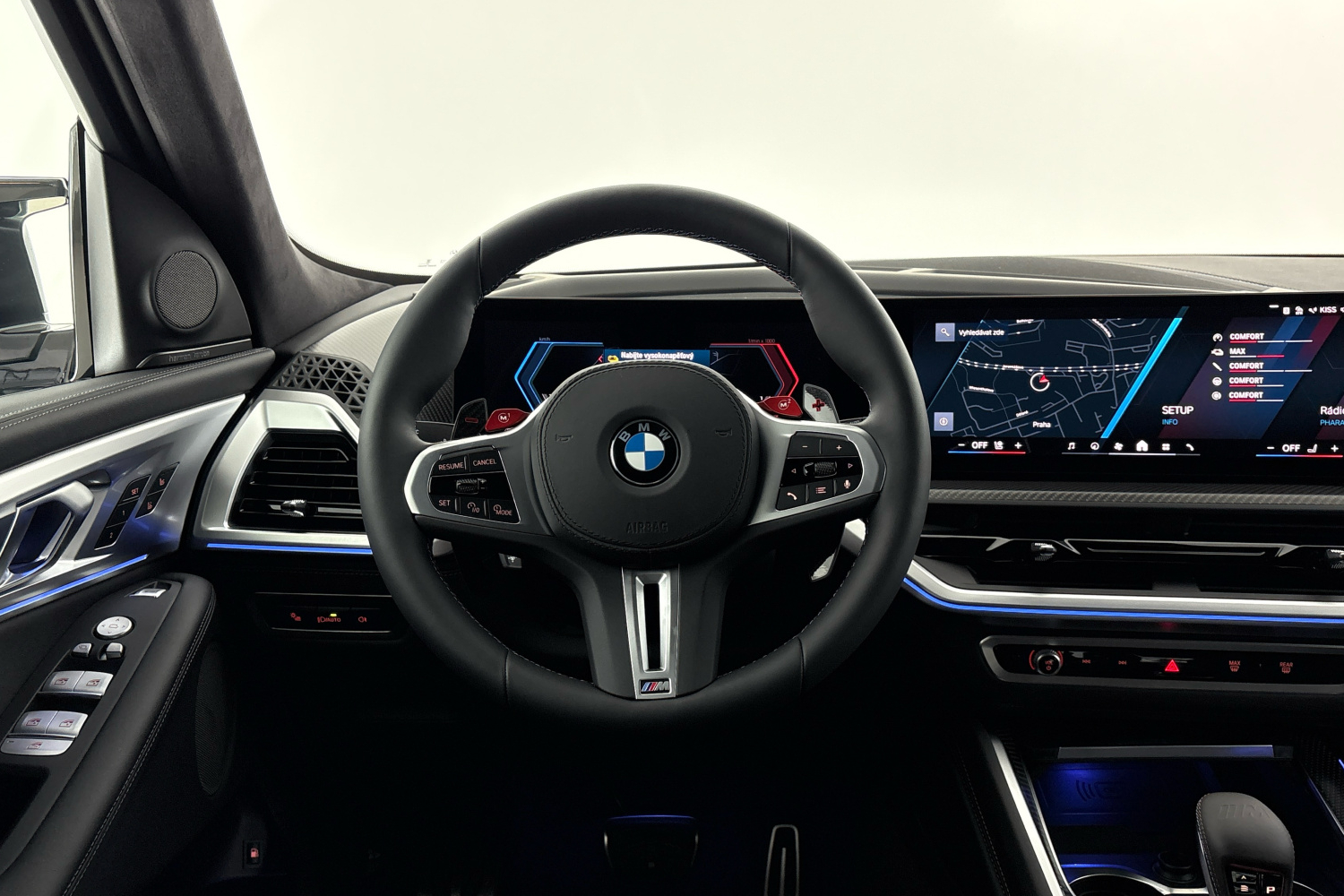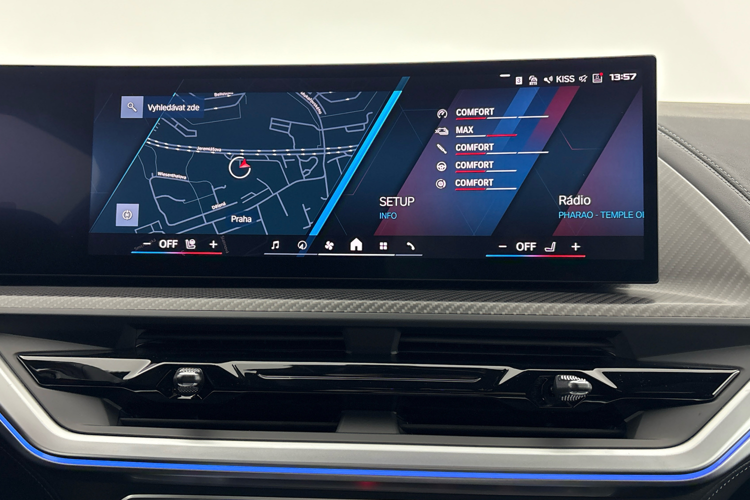 Vůz BMW XM 50e první vysokovýkonný model s eletrifikovaným pohonem. BMW XM spojuje špičkovou tehcniku pohonu s působivým celkovým pojetím. Kombinace barvy a interiéru dohromady ladí. Motor s objemem 2 998 ccm3, výkonem 480 kW/653 k v kombinaci zážehového motoru V8 a elektromotoru dokáže dodat výkon 550kW/748k a točivý moment 1000 N.m.. Jde tedy o nejvýkonnější a nejsilnější sériové BMW všech dob.